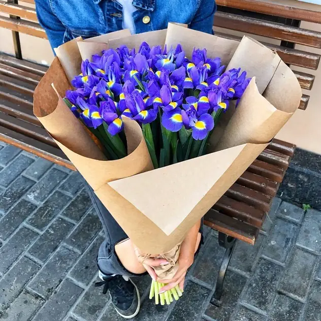 15 Синих Ирисов - пример оформления на фото. Состоит из: Ирис - 15 шт.,
