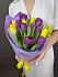 Букет из 15 Тюльпанов желтого и сиреневого цвета