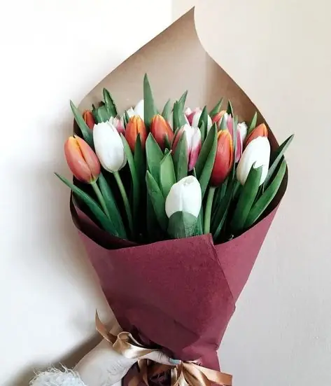 19 Тюльпанов Микс - пример оформления на фото. Состоит из: Тюльпан Микс - 19 шт.,