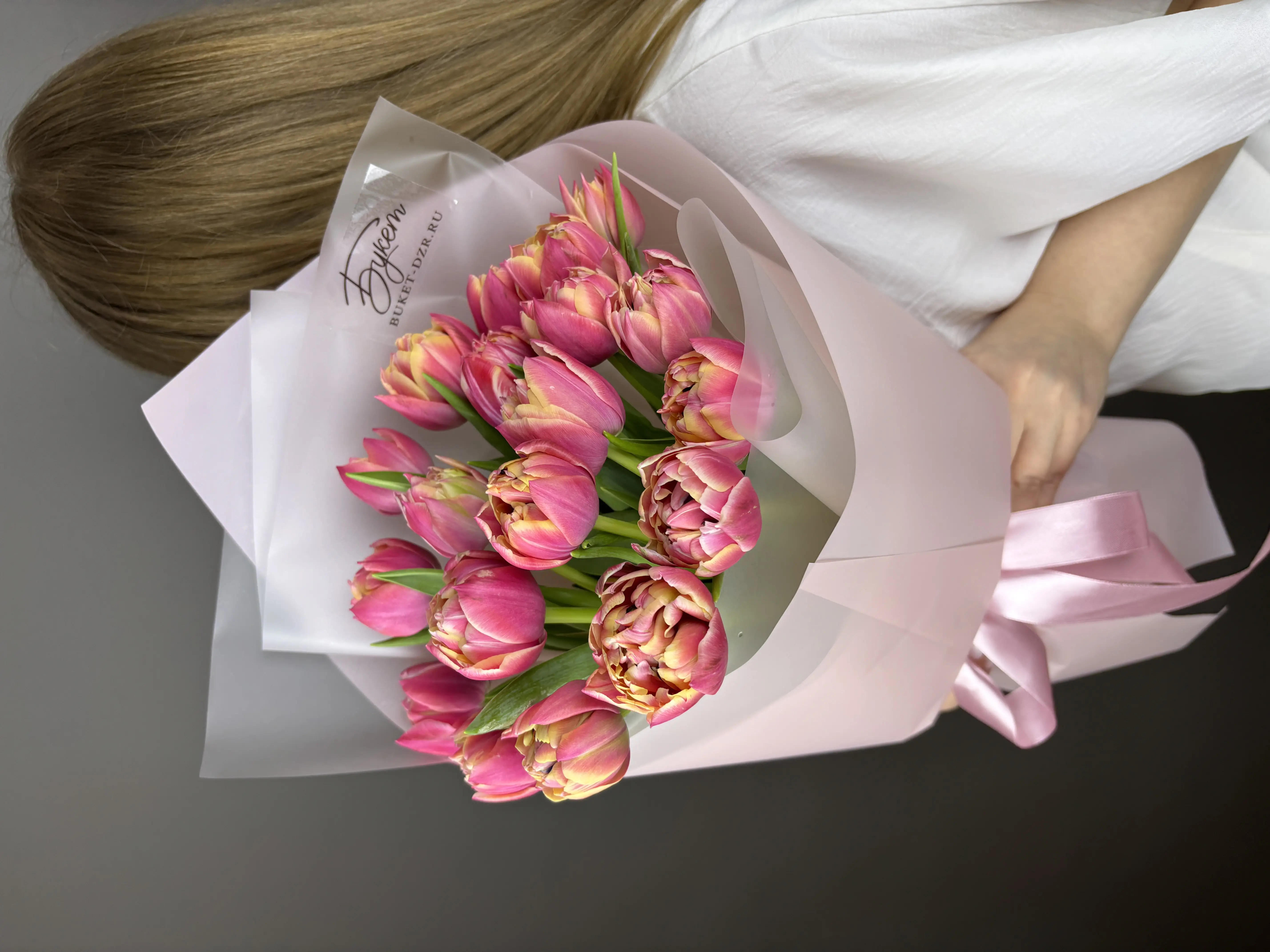 19 Тюльпанов Колумбус - пример оформления на фото. Состоит из: Тюльпан - 19 шт, Упаковка, Лента атласная. Собираем только из свежих цветов, после сборки пришлем Вам фото. Доставим по г. Дзержинску и Нижегородской области, стоимость - 4340 руб..