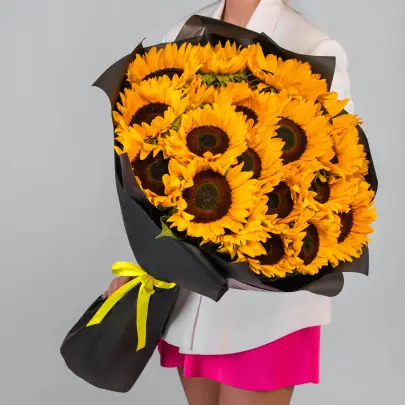 25 Подсолнухов в упаковке - пример оформления на фото. Состоит из: Подсолнух - 25 шт,