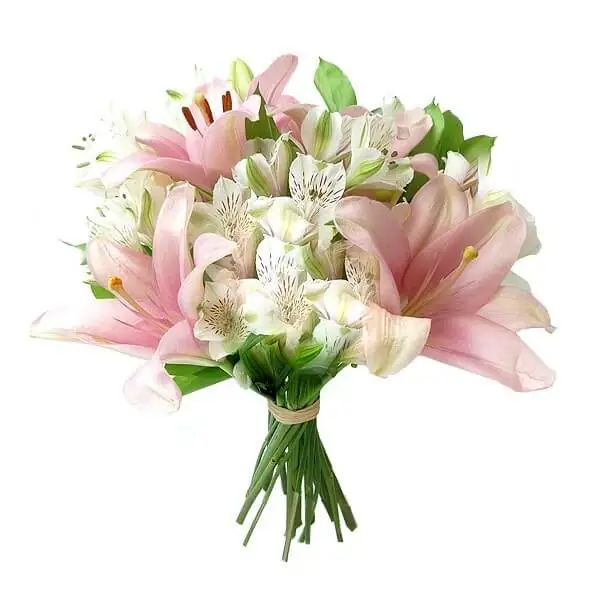 Невероятно нежный букет, который подойдёт юной девушке или невесте на свадьбу. Он состоит из трех лилий нежно-розового цвета и семи белых альстромерий. Цветы отлично сочетаются, не перекрывая друг друга. Розовые лилии означают счастье на языке цветов, в Китае сохранилась традиция дарить эти цветы молодоженам на свадьбу. Белая альстромерия значит родство душ, близость людей. Такой букет можно купить как в дополнение к подарку молодым в самый важный день их жизни, так и в качестве букета невесты. Преподнесите его вместе с предложением руки и сердца – взаимность и положительный ответ будет обеспечен. Подойдут цветы для дня рождения, например, на совершеннолетие юной девушки. Цветы совершенно без запаха, а значит их можно дарить людям с аллергией, тем кто не любит сильные ароматы. Стоять в вазе букет будет не менее двух недель. Мы приложим инструкцию по уходу и средства для продления жизни растений. Купить букет из трех лилий и белых альстромерий можно в онлайн гипермаркете База Цветов. Доставка возможна по Дзержинску и области. Перед отправкой и после вручения отправляется обязательный фотоотчёт заказчику.