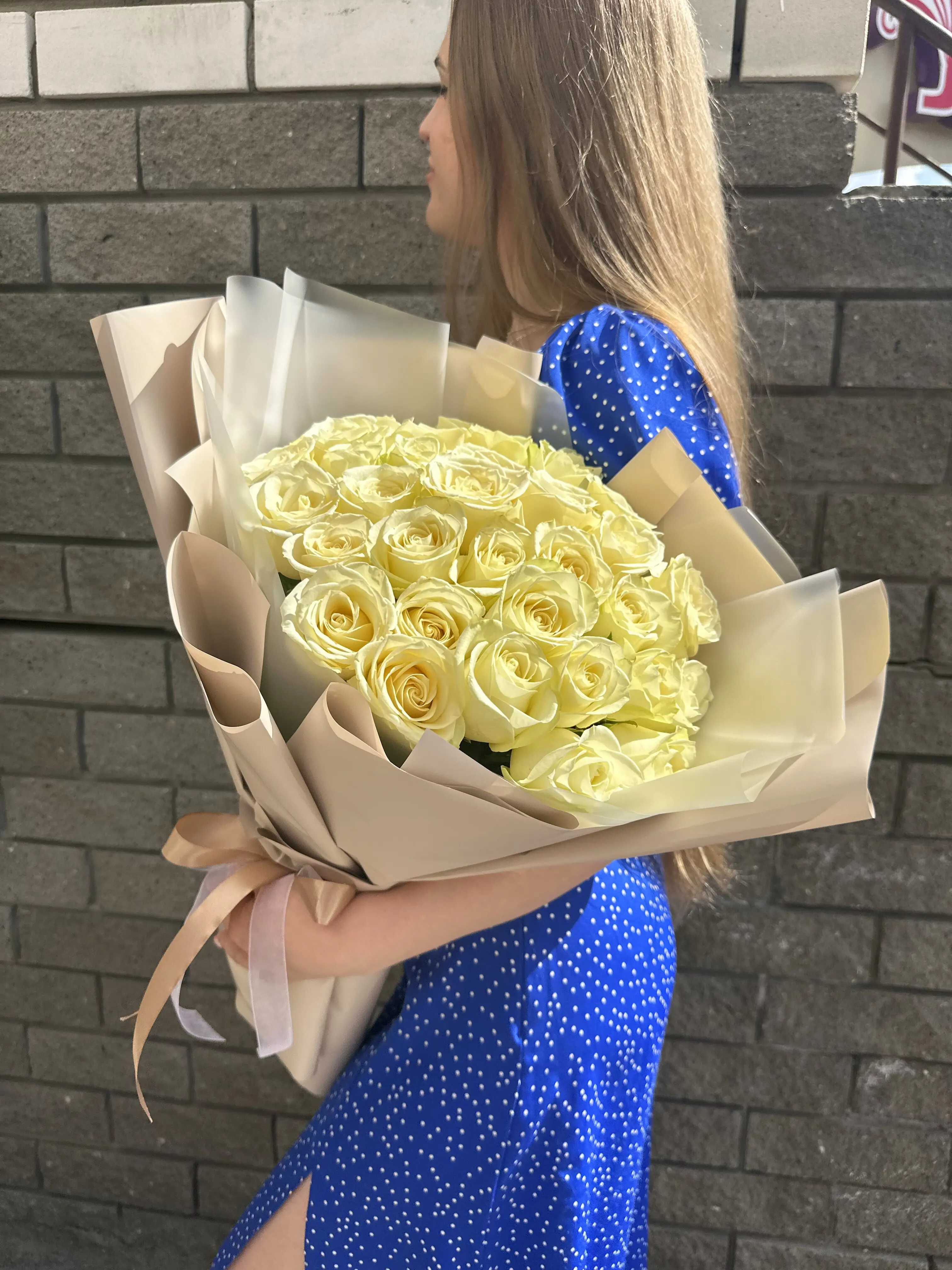 31 Белоснежная Роза - пример оформления на фото. Состоит из: Кенийская роза - 31 шт,