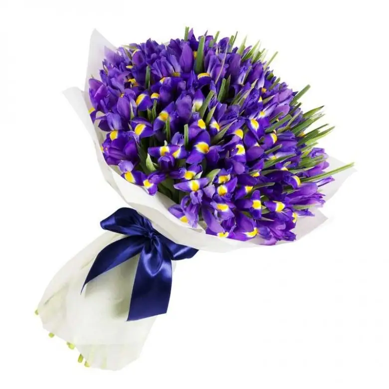 45 Ирисов в белой упаковке - пример оформления на фото. Состоит из: Ирис - 45 шт.