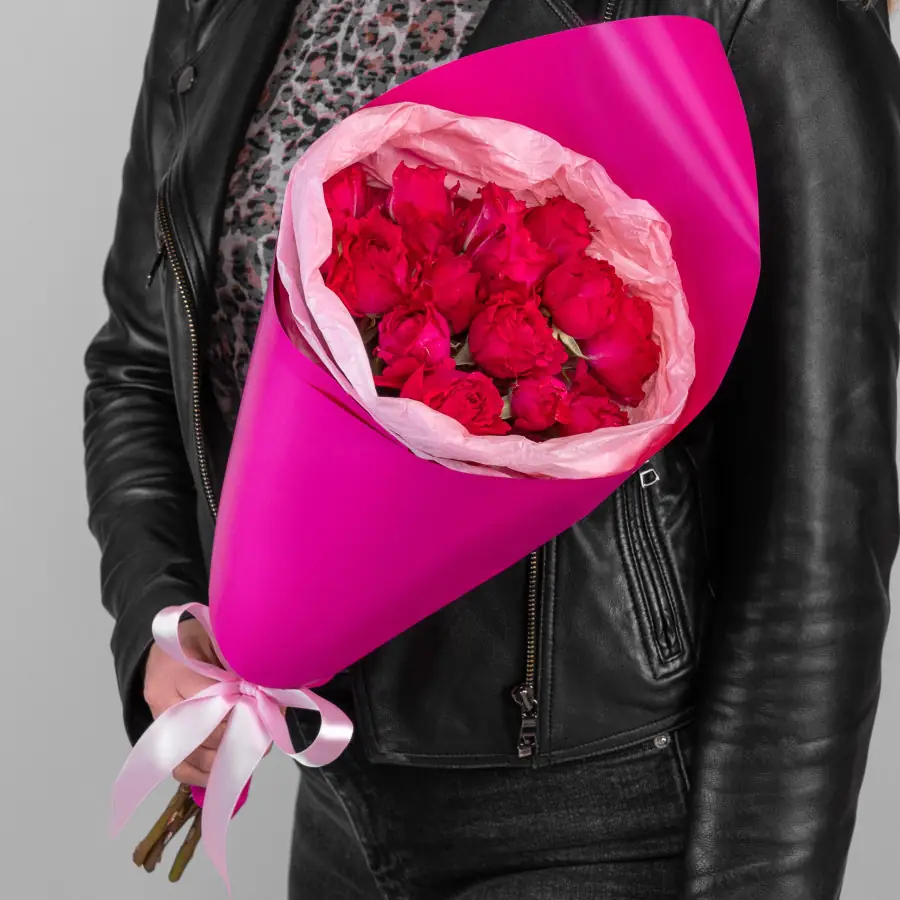 5 Кустовых Пионовидных Красных Роз - пример оформления на фото. Состоит из: Роза кустовая пионовидная - 5 шт,