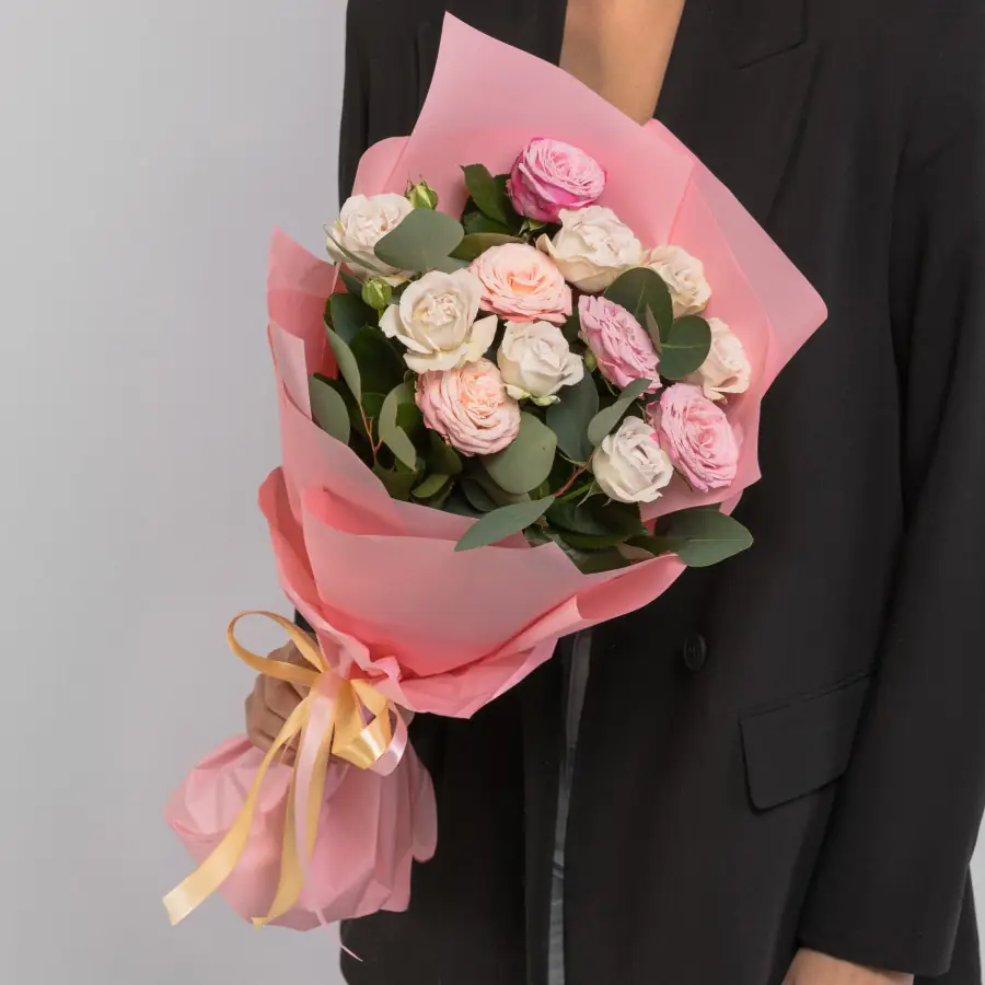 5 Розовых кустовых пионовидных роз — купить по цене от 2800 руб. с доставкой в Дзержинске