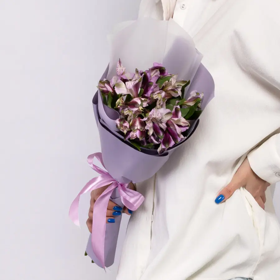Альстромерию привезли из Перу в восемнадцатом веке. Сначала она попала в Швецию благодаря Клаусу Альстромеру, в честь которого и была названа. Ее более романтические имена: Лилия инков или Перуанская лилия упоминаются реже. Дарить букет альстромерий можно практически по любому поводу: на языке цветов она значит дружбу, восхищение, благодарность. Сиреневая альстромерия имеет отдельное значение – подчеркнуть неповторимость одариваемого человека для дарителя, его важность в жизни окружающих людей. Лучше всего букет из 5 сиреневых альстромерий преподнести супруге на годовщину свадьбы, матери, бабушке на юбилей или просто так – как знак внимания. Цветок нежной окраски с чуть светлой серединкой и асимметричными лепестками, два или три из которых покрыты темными черточками, больше всего напоминает орхидею. Располагается на плотном стебле длиной до 80-90 сантиметров пять или восемь соцветий в окружении длинных, ланцетовидных темно-зеленого цвета, листьев. Альстромерия не имеет запаха и её можно без опаски дарить аллергикам, чувствительным людям, детям. В срезанном виде стоит в вазе до 14 – 18 дней, не забывайте менять ей воду на свежую. Онлайн гипермаркет База Цветов предлагает купить букет в дизайнерской упаковке из 5 сиреневых альстромерий. При необходимости заказ будет доставлен в любую точку Дзержинска или области.