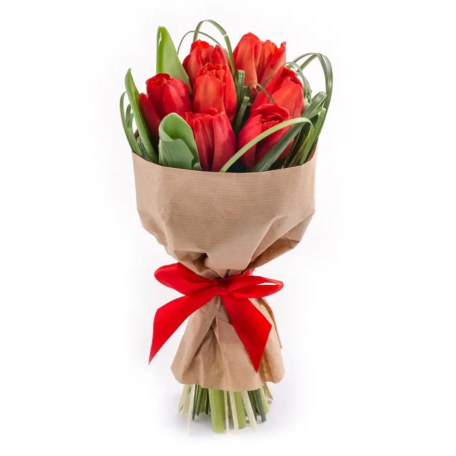 Букет Тюльпанов Красных 7 шт - пример оформления на фото. Состоит из: Тюльпан - 7шт.,