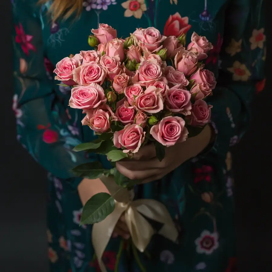 7 Розовых Роз под ленту - пример оформления на фото. Состоит из: Роза Кустовая - 7 шт, Лента атласная , . Собираем только из свежих цветов, после сборки пришлем Вам фото. Доставим по г. Дзержинску и Нижегородской области, стоимость - 2300 руб..