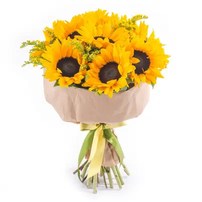 9 Подсолнухов в крафте - пример оформления на фото. Состоит из: Подсолнух - 9 шт,