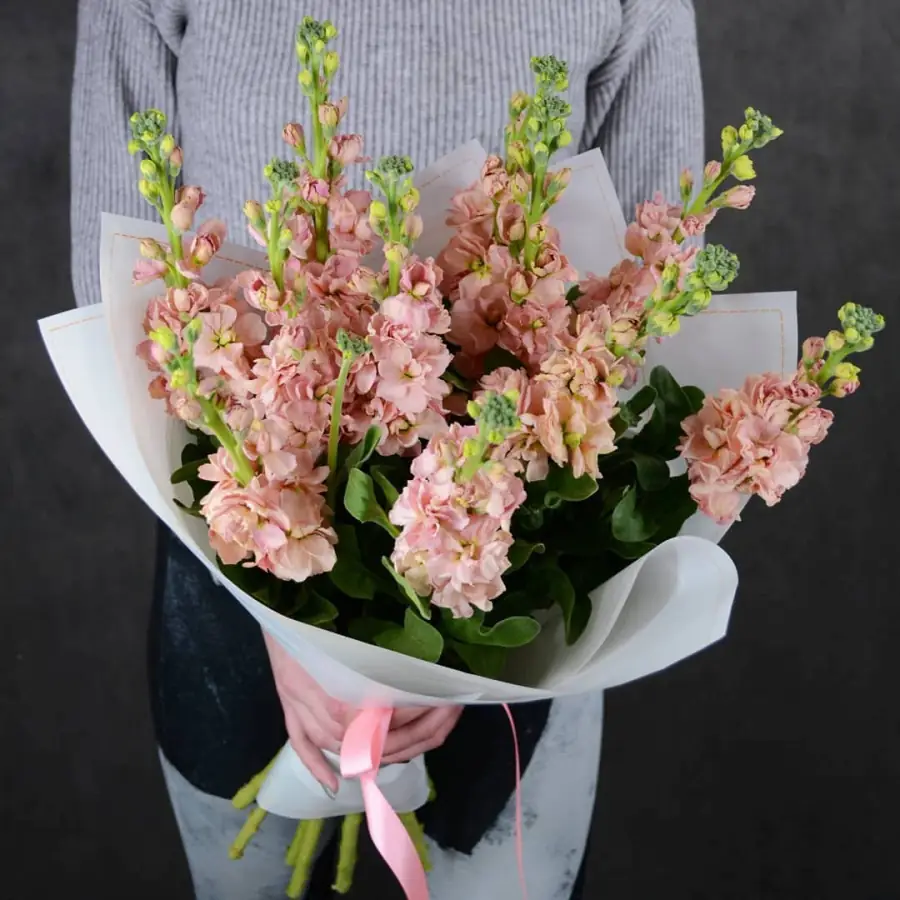 Букет "11 Светло-Коричневых Маттиол" - пример оформления на фото. Состоит из: Маттиола Кофейная - 11 шт.,