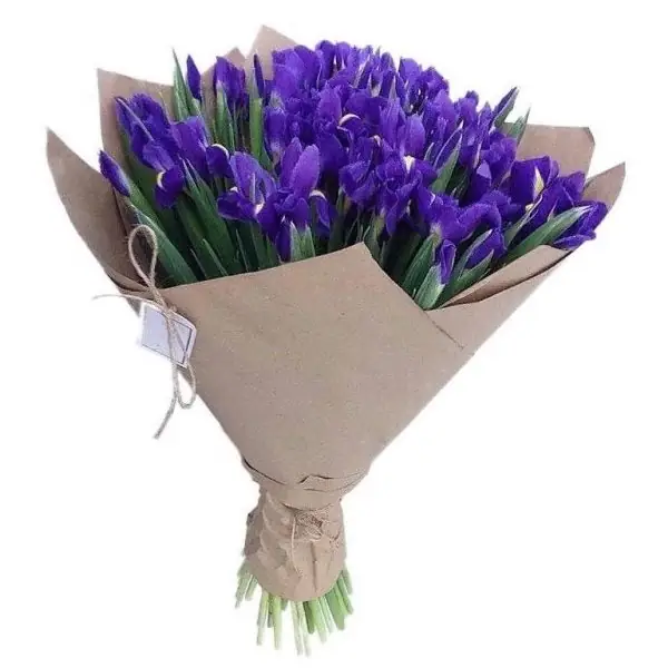 Букет "25 Ирисов" - пример оформления на фото. Состоит из: Ирис - 25 шт.,