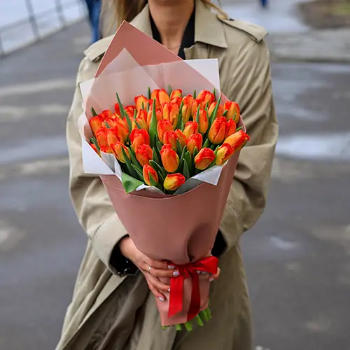 Букет 49 пламенных тюльпанов — купить по цене от 11390 руб. с доставкой в Дзержинске