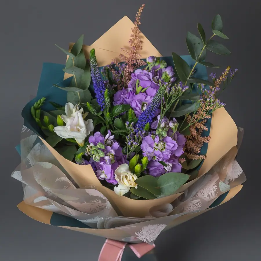 Полевой Букет Цветов - пример оформления на фото. Состоит из: Матиола - 3 шт.,