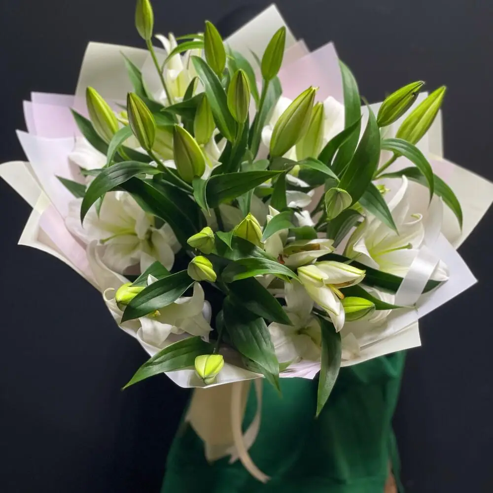 Букет из 9 Лилий в упаковке - пример оформления на фото. Состоит из: Лилия - 9 шт,