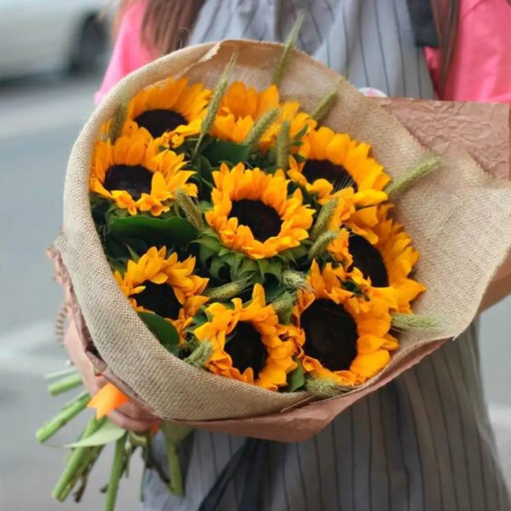 9 Подсолнухов в упаковке - пример оформления на фото. Состоит из: Подсолнух - 9 шт,