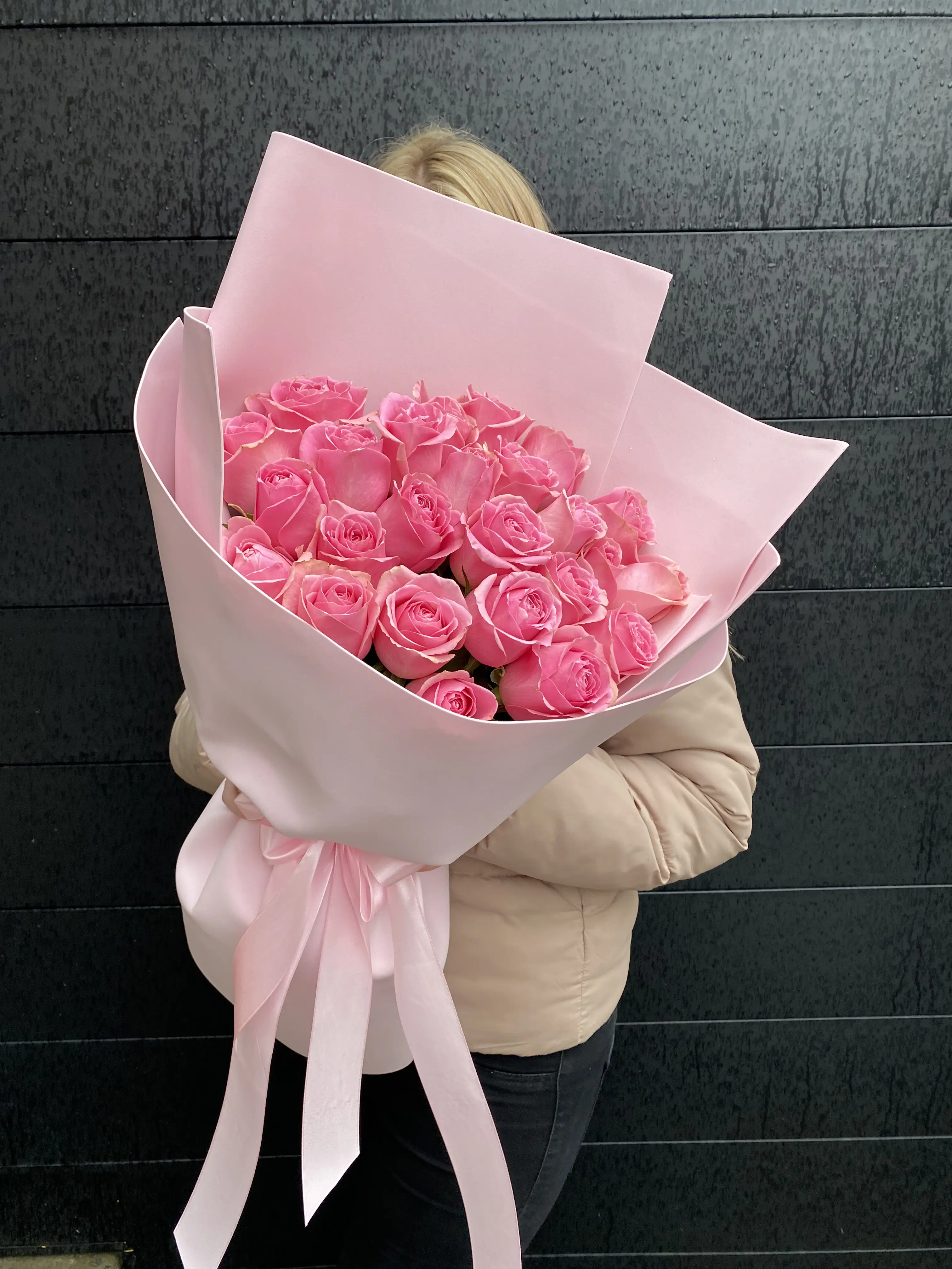 Нежно-Розовые розы - пример оформления на фото. Состоит из: Роза Кенийская - 25 шт, Упаковка, Лента атласная. Собираем только из свежих цветов, после сборки пришлем Вам фото. Доставим по г. Дзержинску и Нижегородской области, стоимость - 3475 руб..