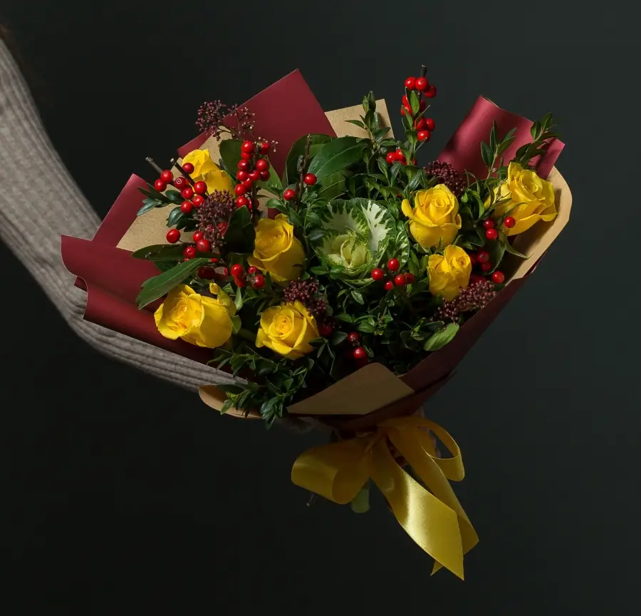 Букет "Летняя Свежесть" - пример оформления на фото. Состоит из: Илекс - 3 шт.,