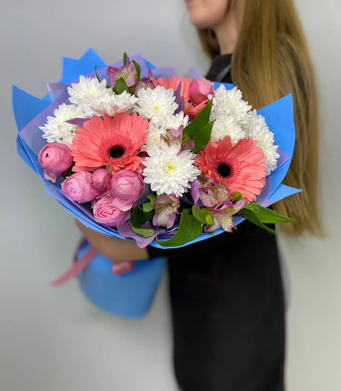 В нашем интернет-магазине букет цветов состоит только из свежих цветов. Всегда в наличии - лилии, ирисы, орхидеи, гладиолусы, лаванда, нарциссы, мимоза и другие.