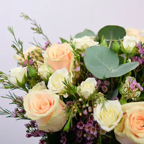 Вкус сливочного мороженого - вот, что напоминает этот нежный букет из ассорти роз в кремовой гамме.
