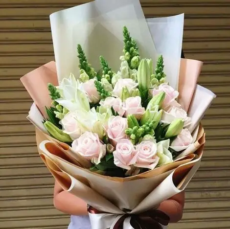 Нежный букет с лилией и розами - пример оформления на фото. Состоит из: Лилия - 3 шт,
