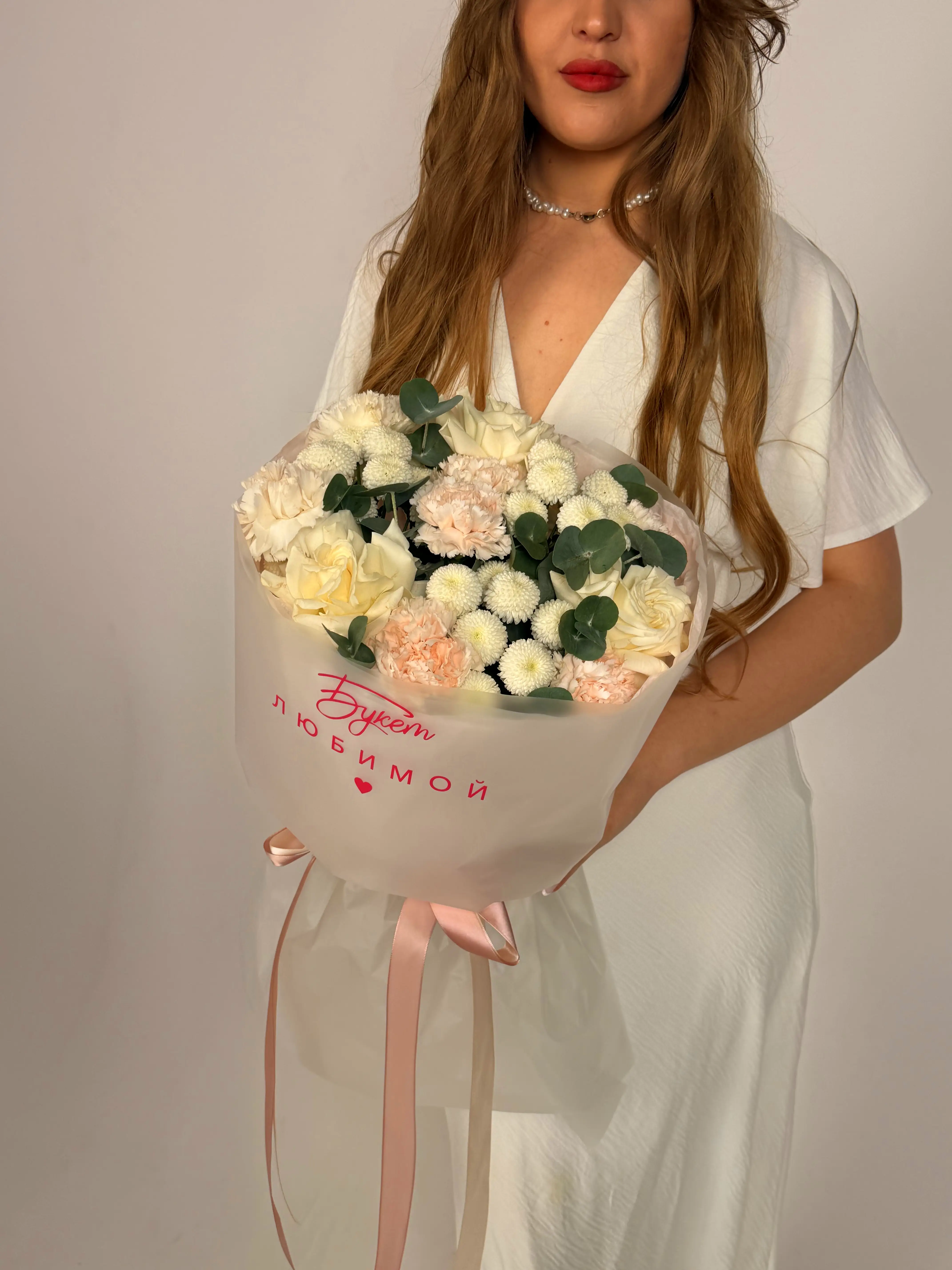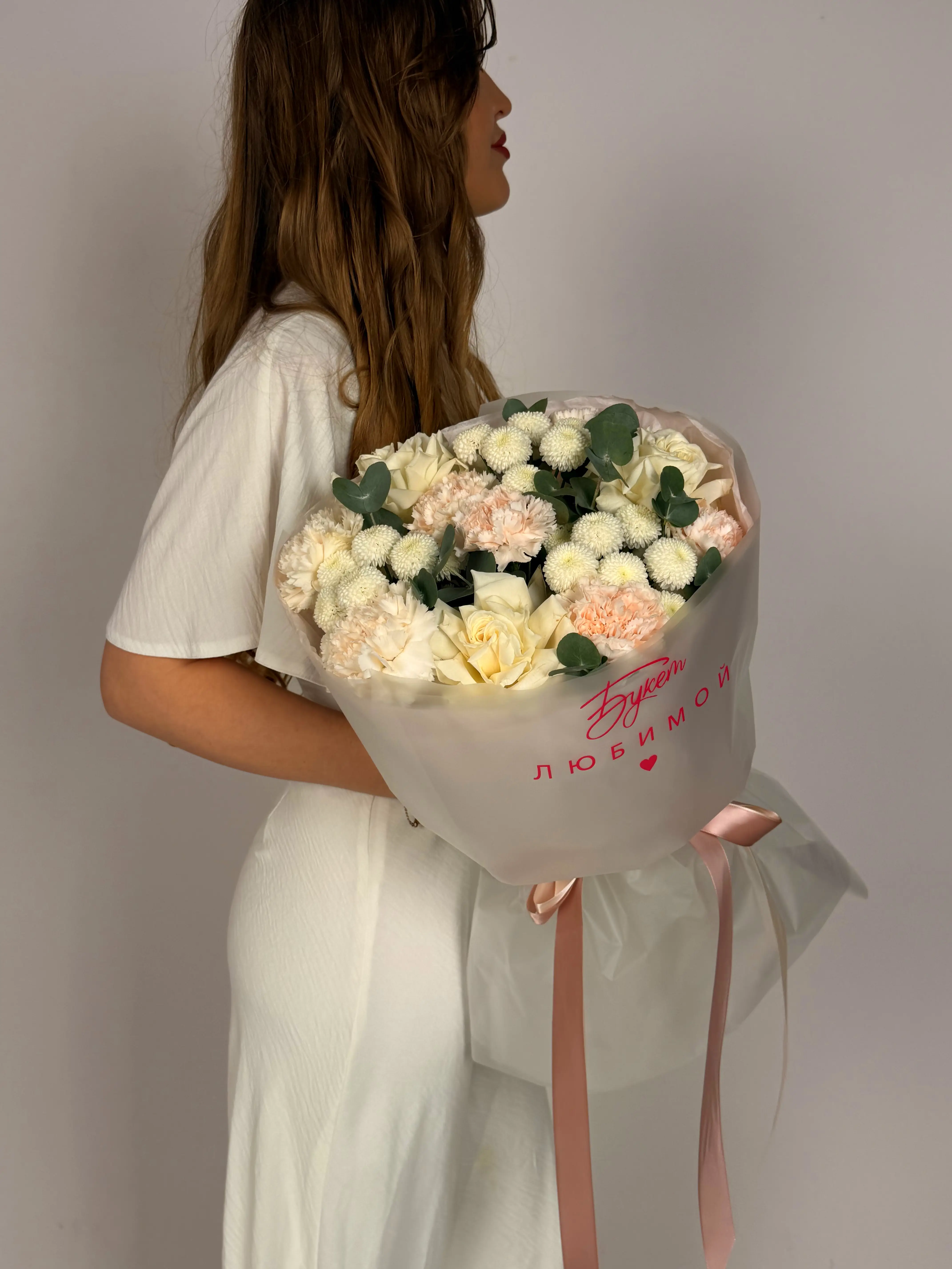 Лента атласная . Собираем только из свежих цветов, после сборки пришлем Вам фото. Доставим по г. Дзержинску и Нижегородской области, стоимость - 3820 руб..