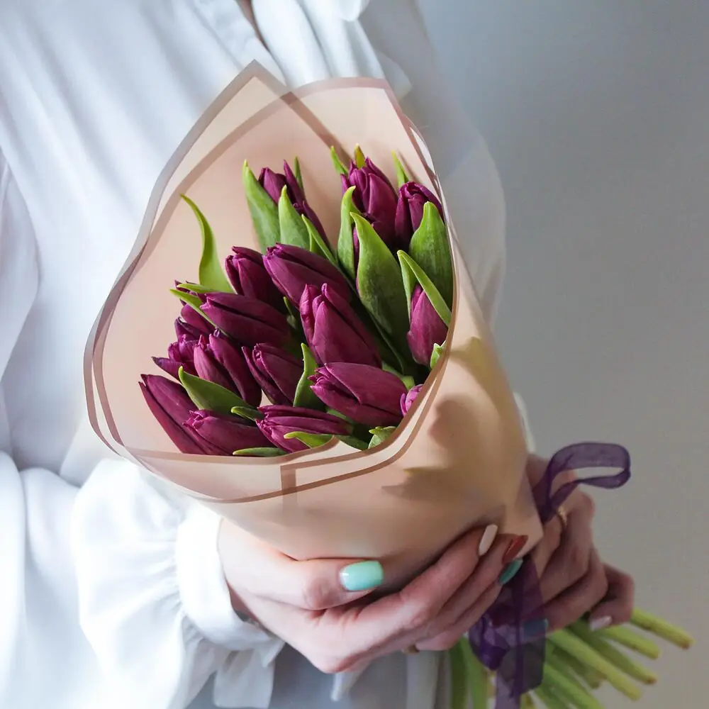 Фиолетовые тюльпаны 25 шт — купить по цене от 5650 руб. с доставкой в Дзержинске