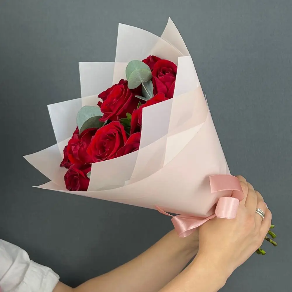 11 роз бордового цвета с эвкалиптом — купить по цене от 2599 руб. с доставкой в Дзержинске