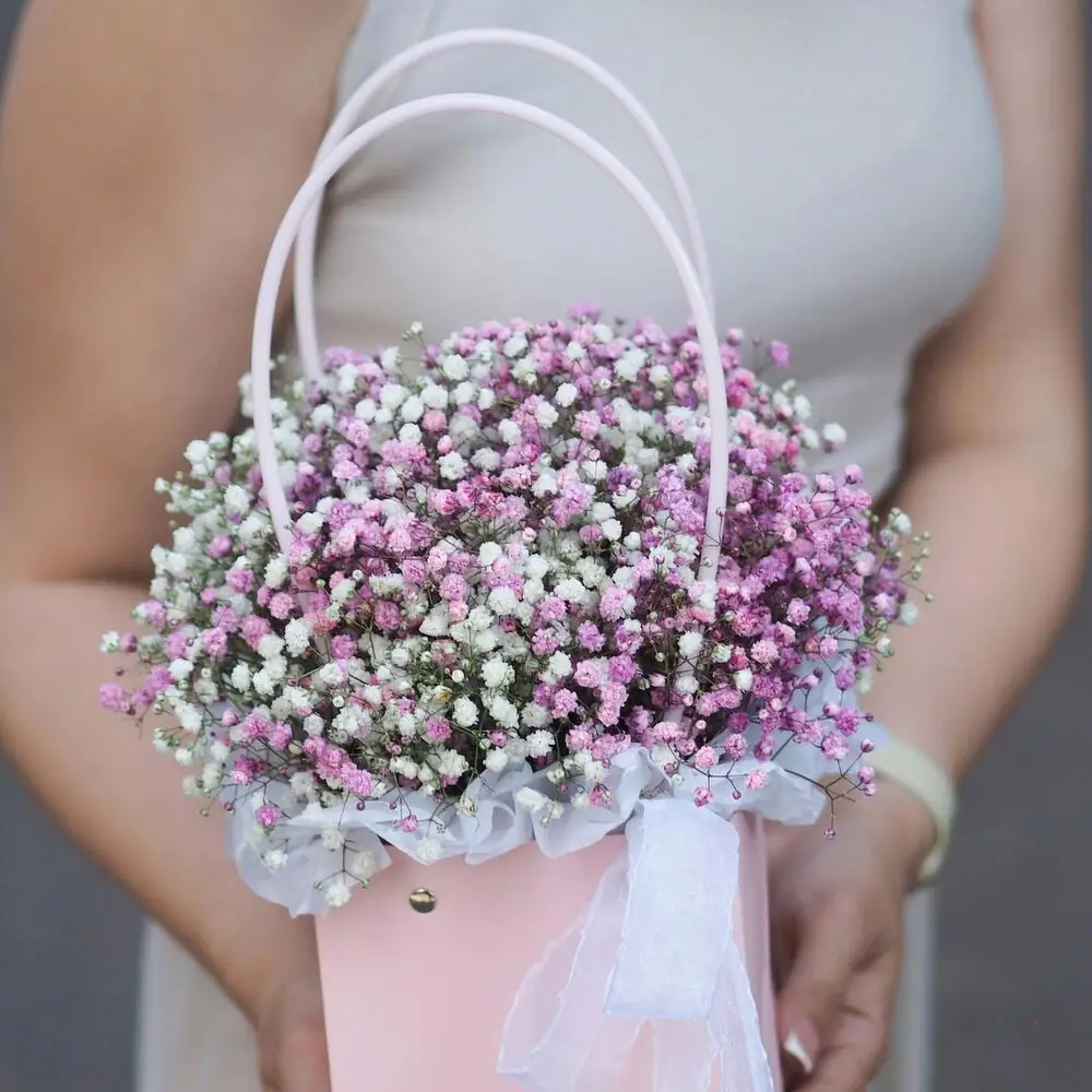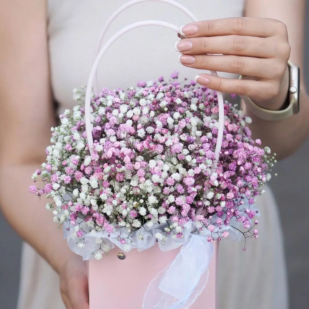 Нежная розовая гипсофила в сумке