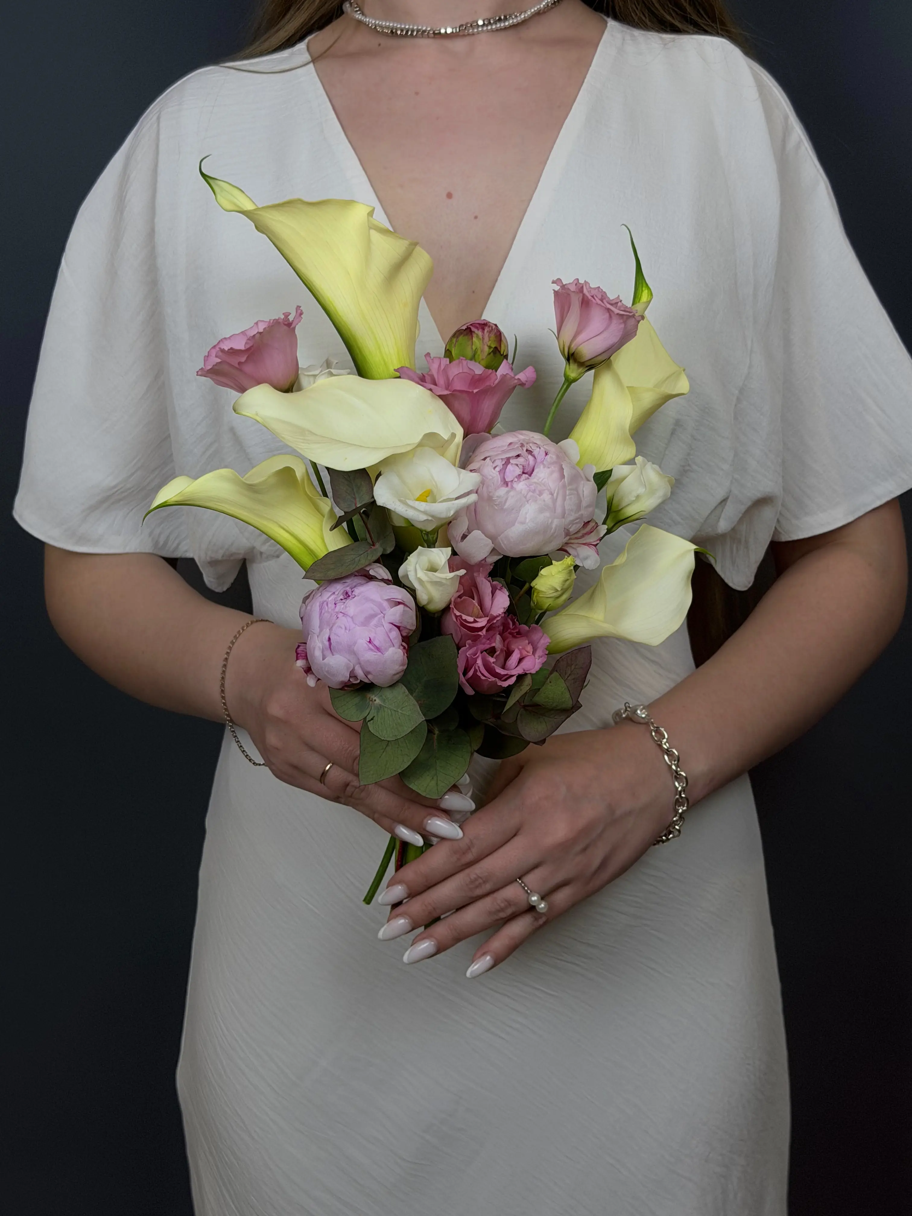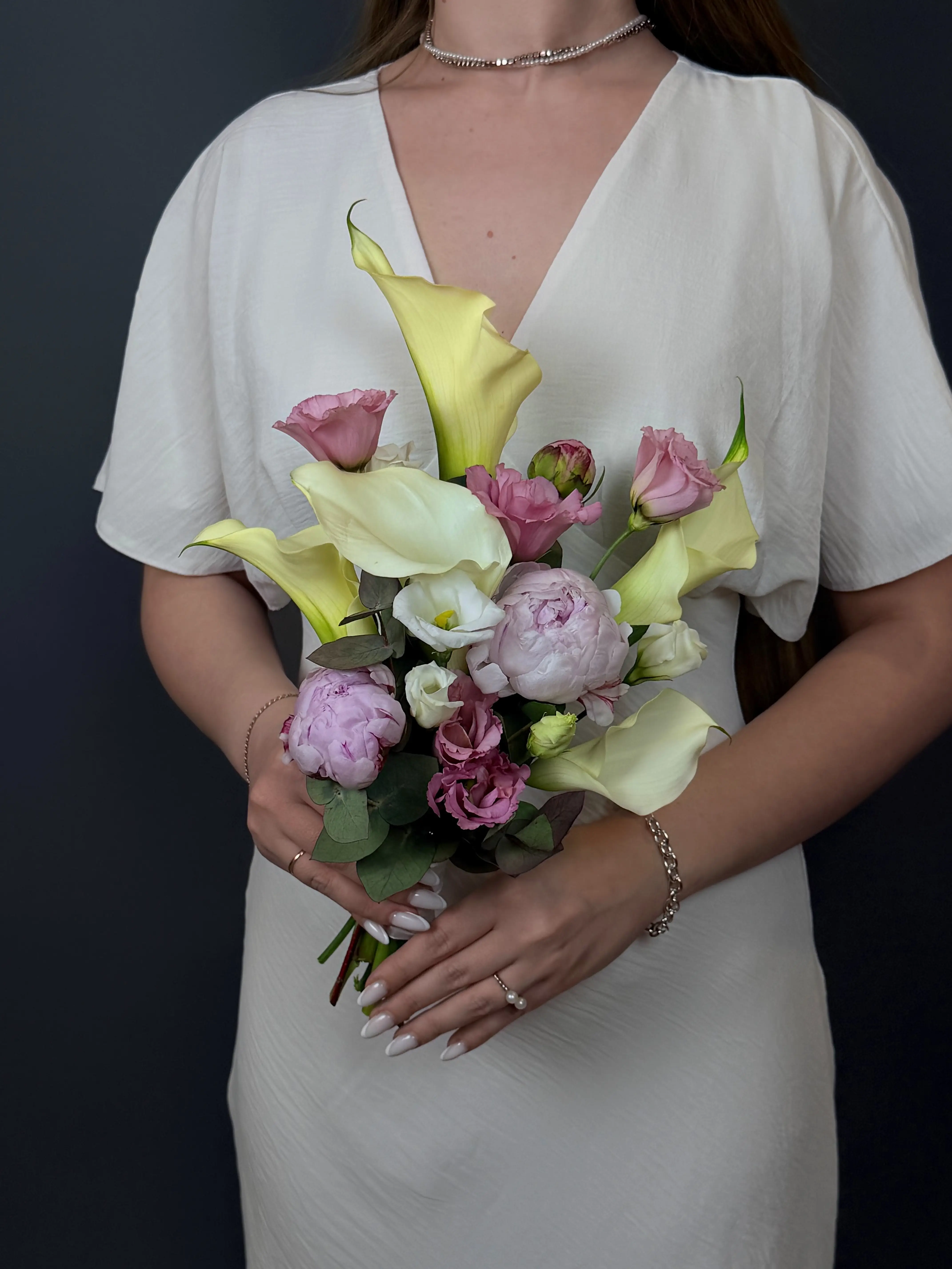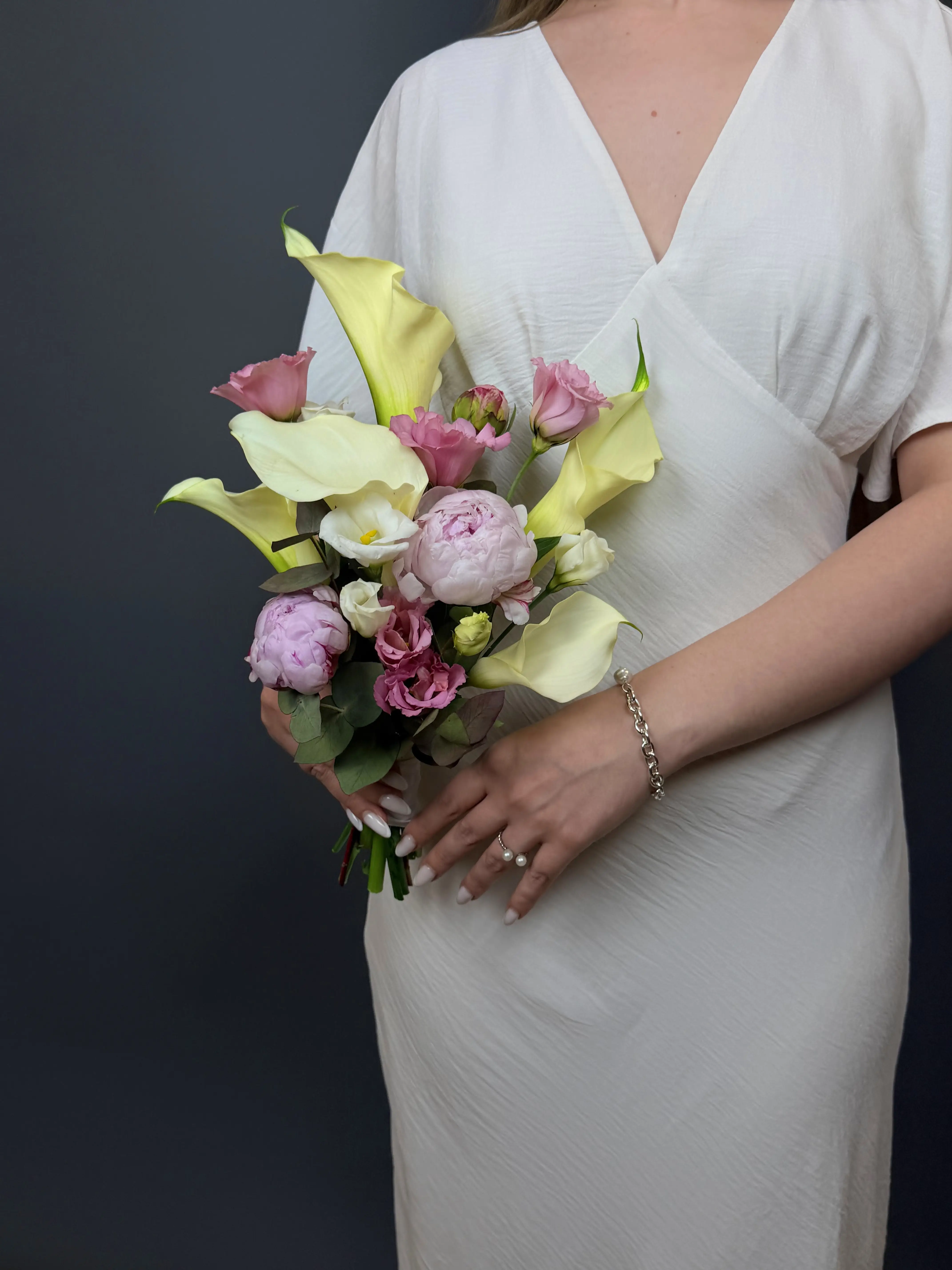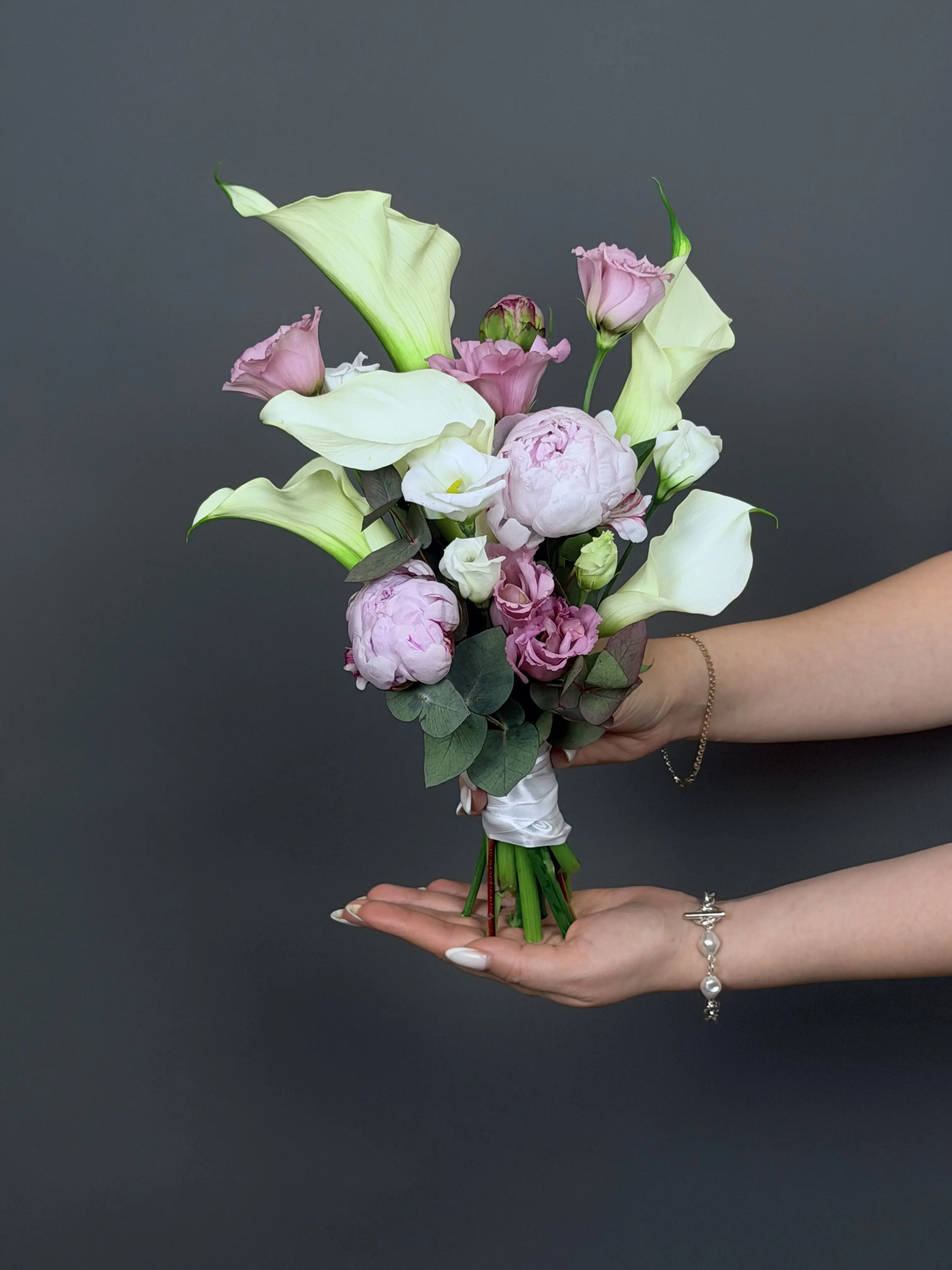Свадебная композиция с пионами и каллами