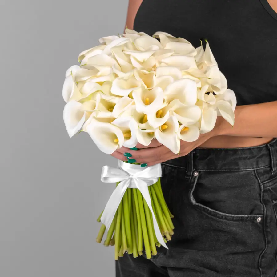 На фото - 51 снежная Калла под ленту . В составе данной композиции: Калла - 51 шт,