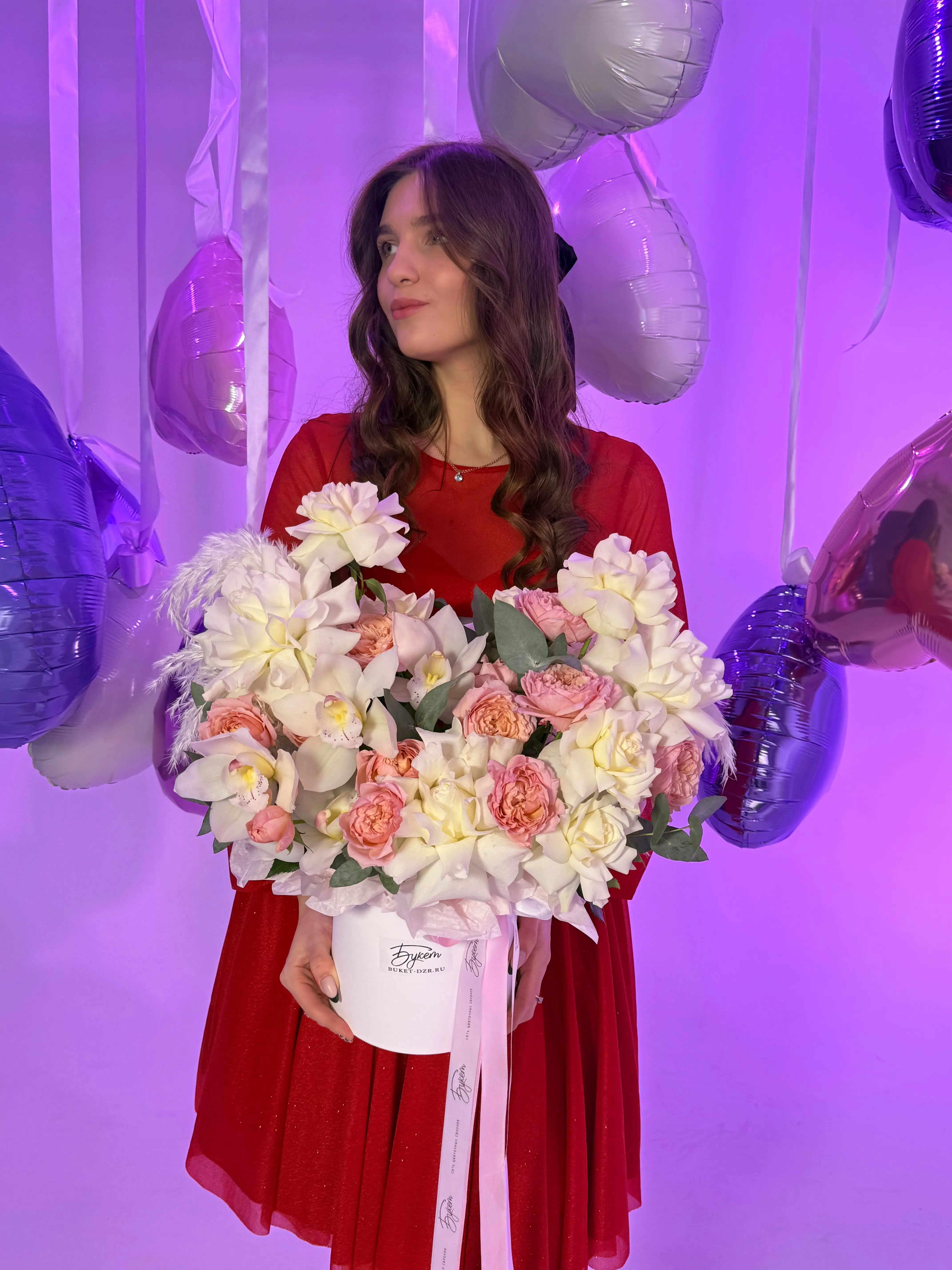 У нас можно заказать Нежная композиция с орхидеями и розами за 6600 руб.