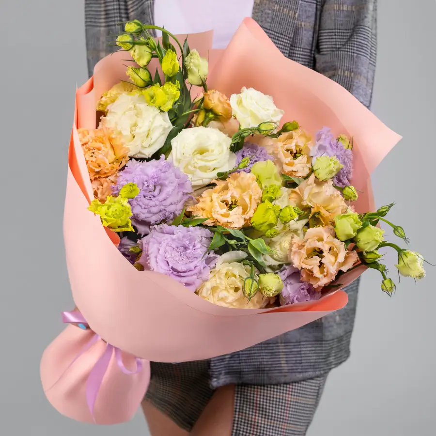 На фото - 19 Лизиантусов Микс в упаковке . В составе данной композиции: Эустома - 19 шт,