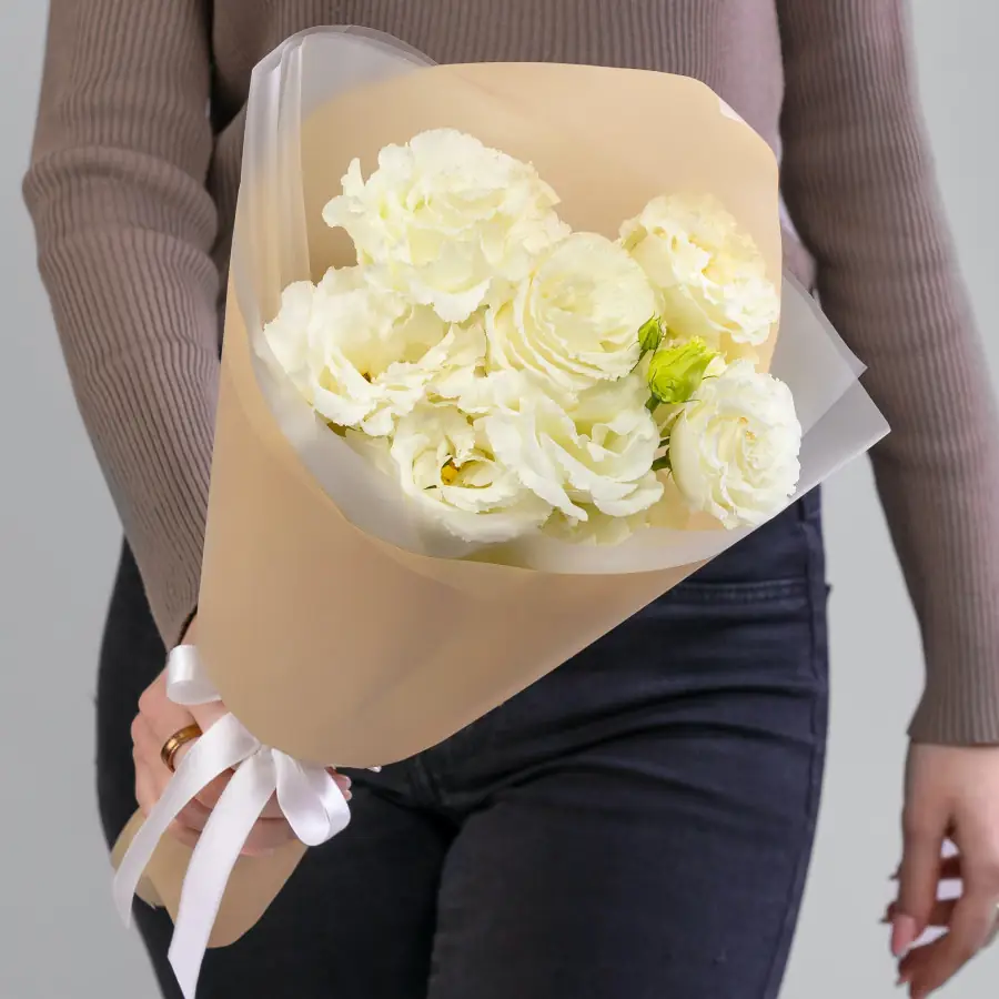 На фото - 3 Белых Лизиантуса в упаковке . В составе данной композиции: Эустома - 3 шт,