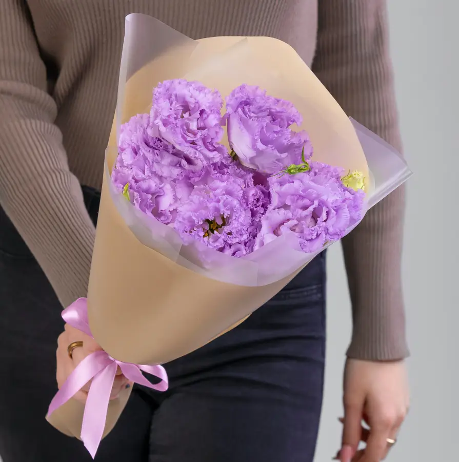 У нас можно заказать Букет из 3 Сиреневых Лизиантусов в упаковке за 1650 руб.