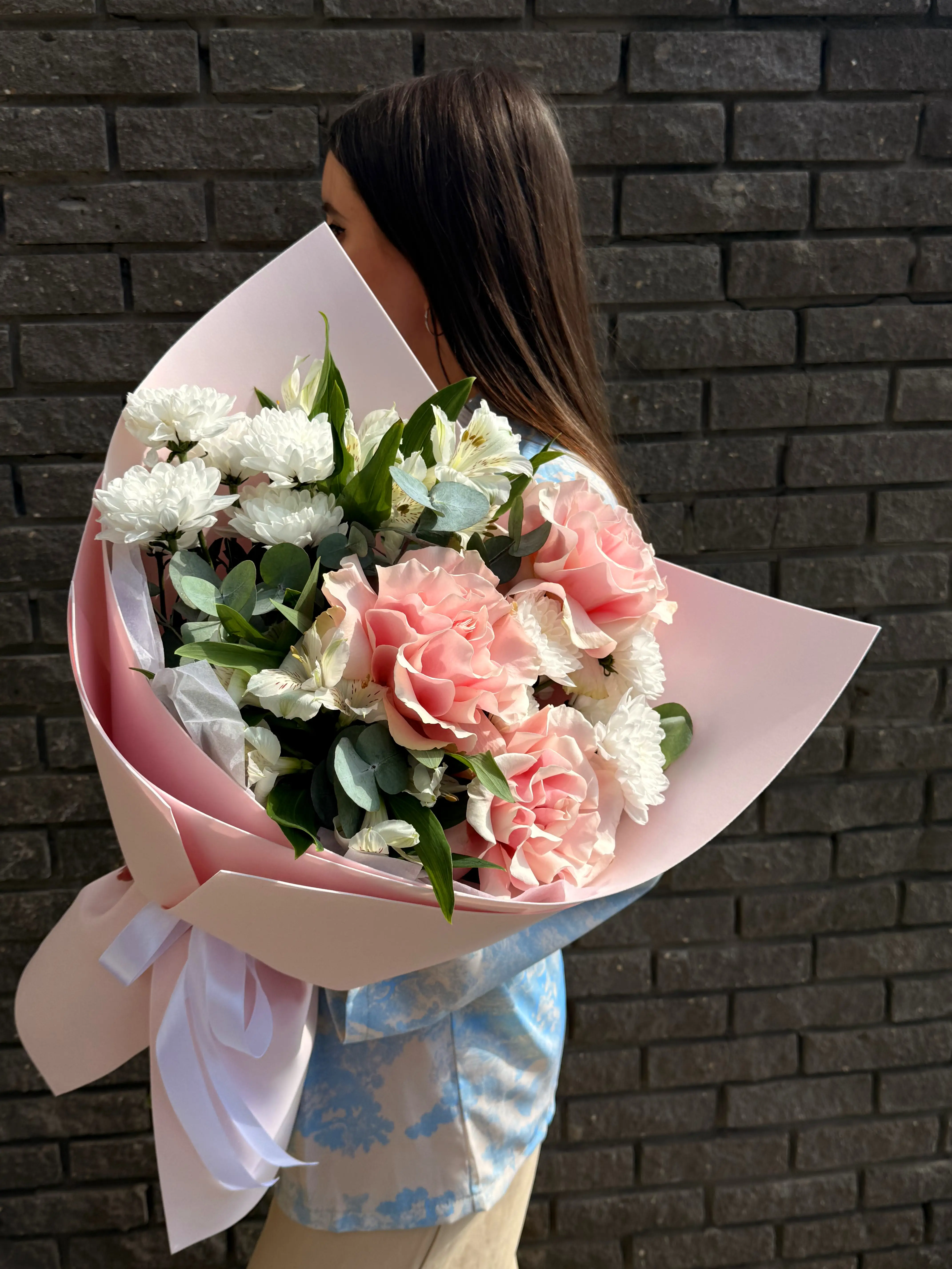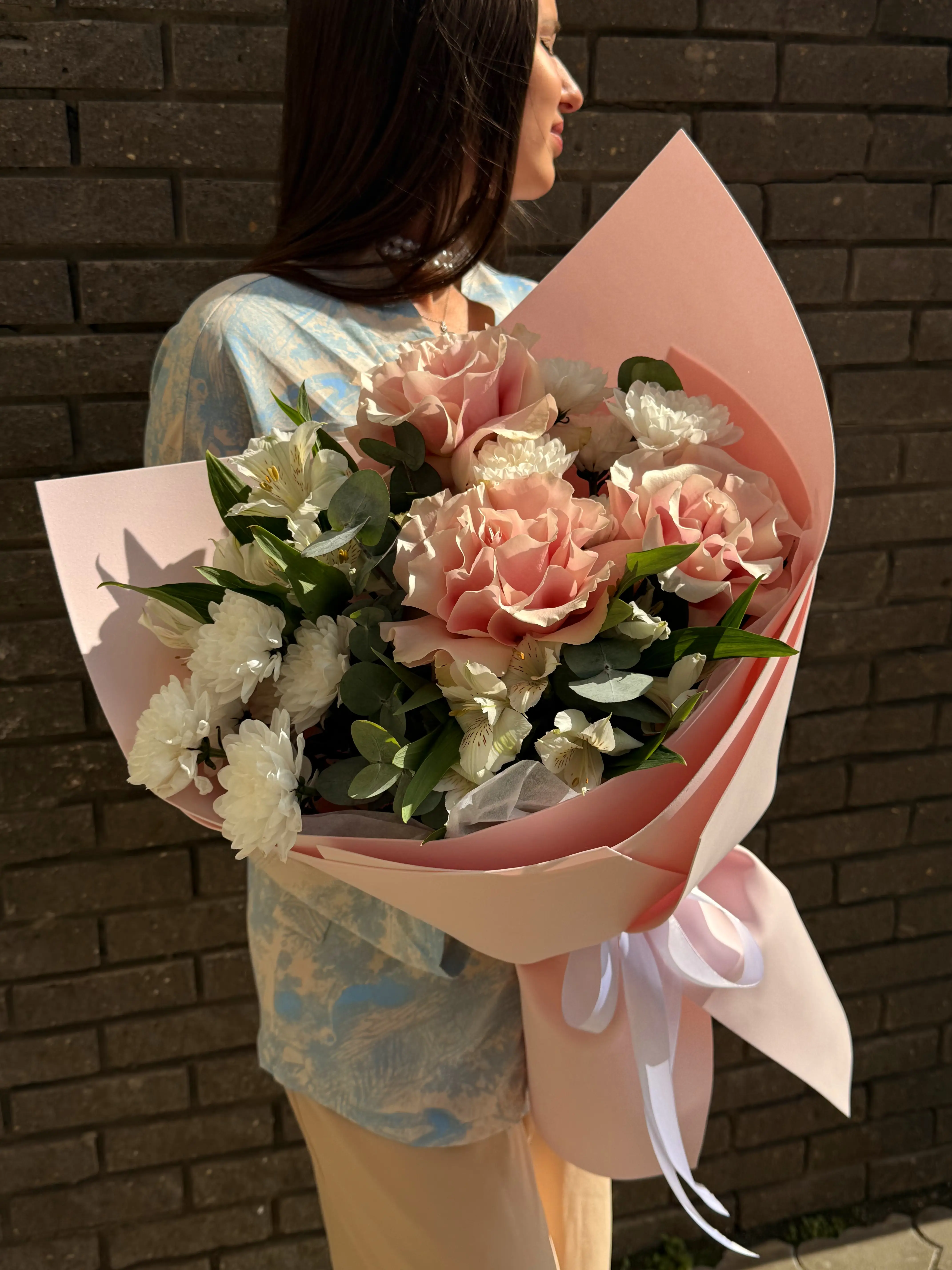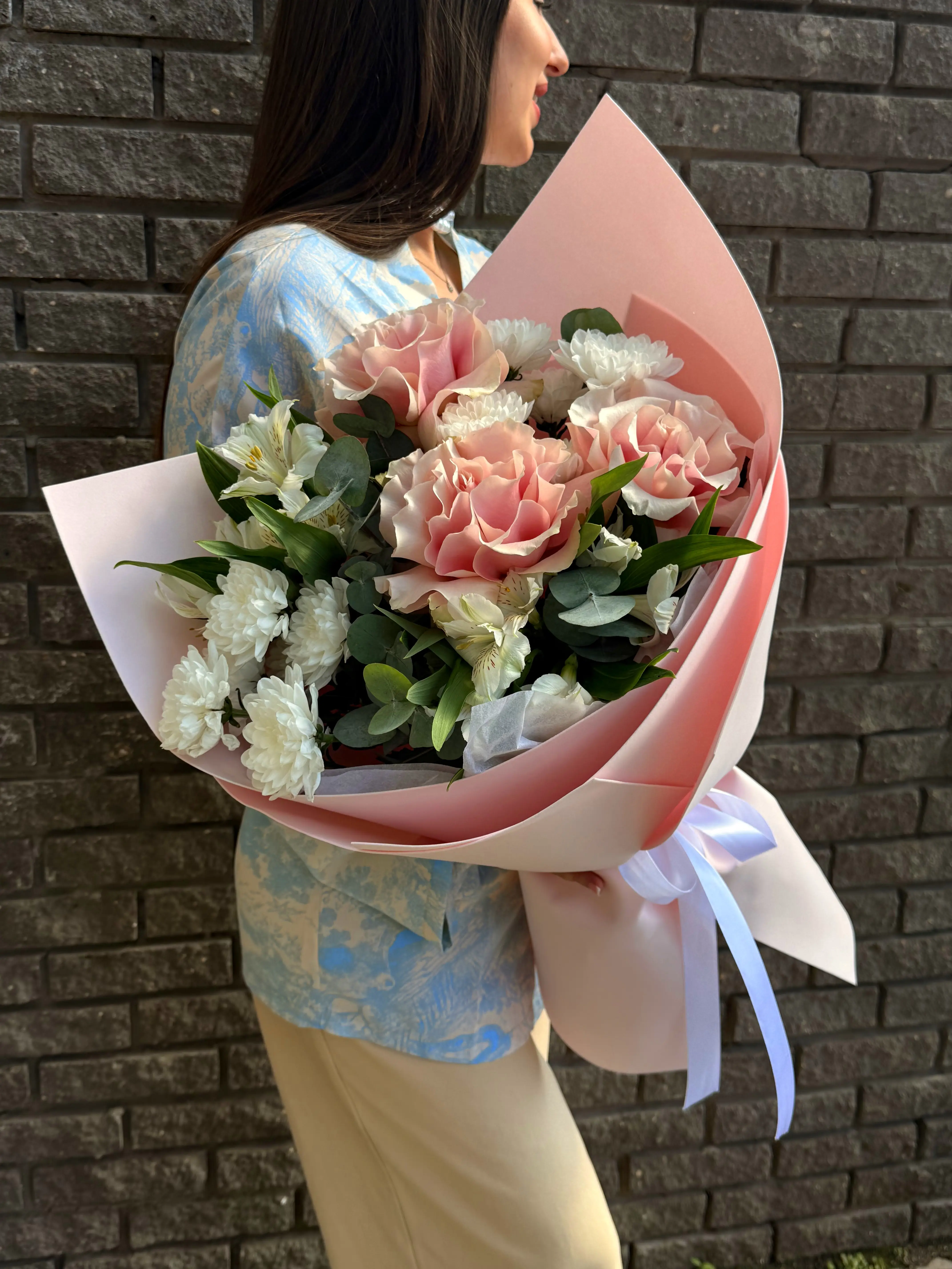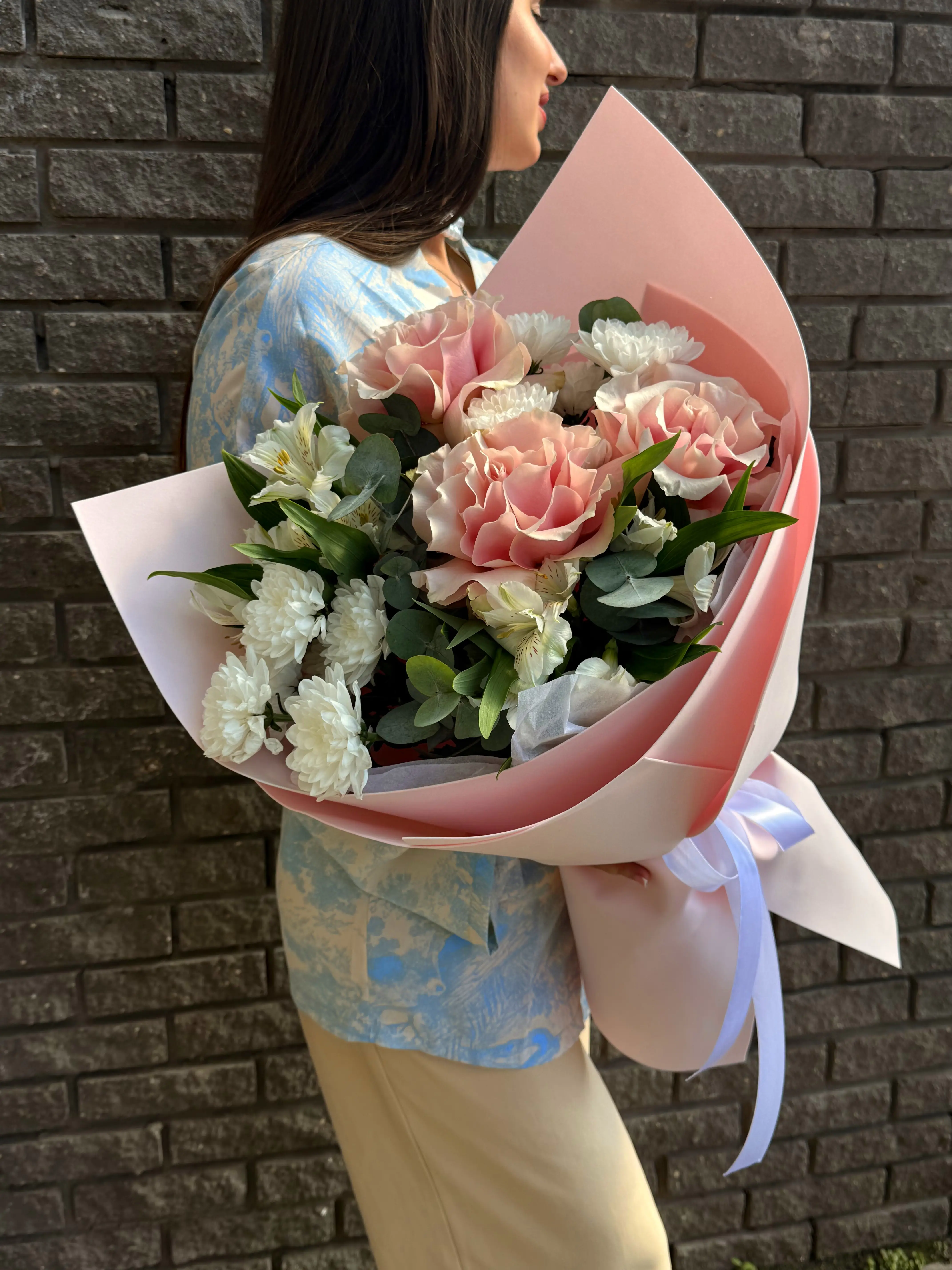 Представляем вашему вниманию изысканный авторский букет, который станет воплощением нежности и изящества для любого особого момента. В его состав входят очаровательные альстромерии и великолепные розы, которые создают гармоничную и утонченную композицию, наполняющую пространство радостью, уютом и ощущением праздника. Эти цветы идеально дополняют друг друга, создавая неповторимую игру фактур и нежных оттенков.