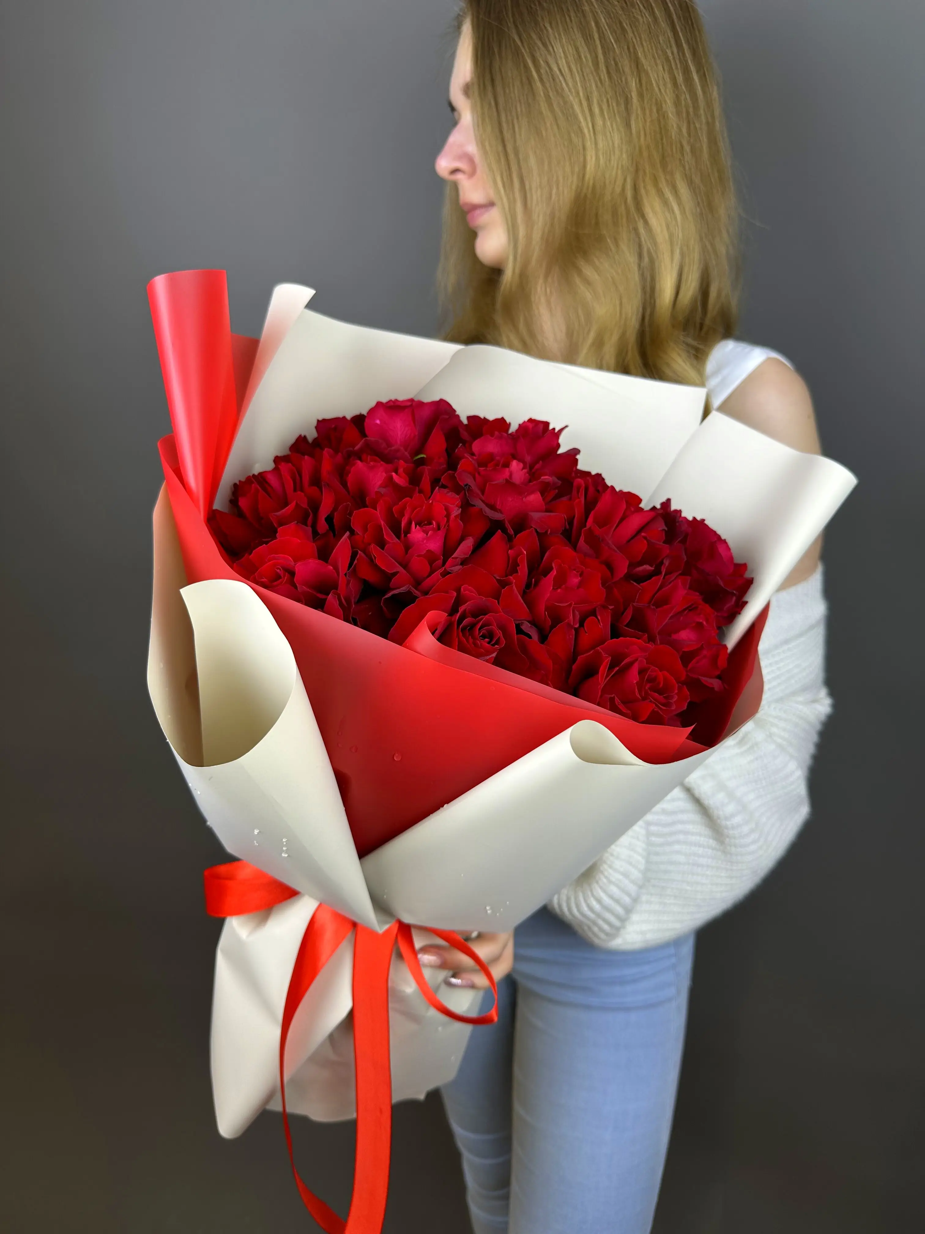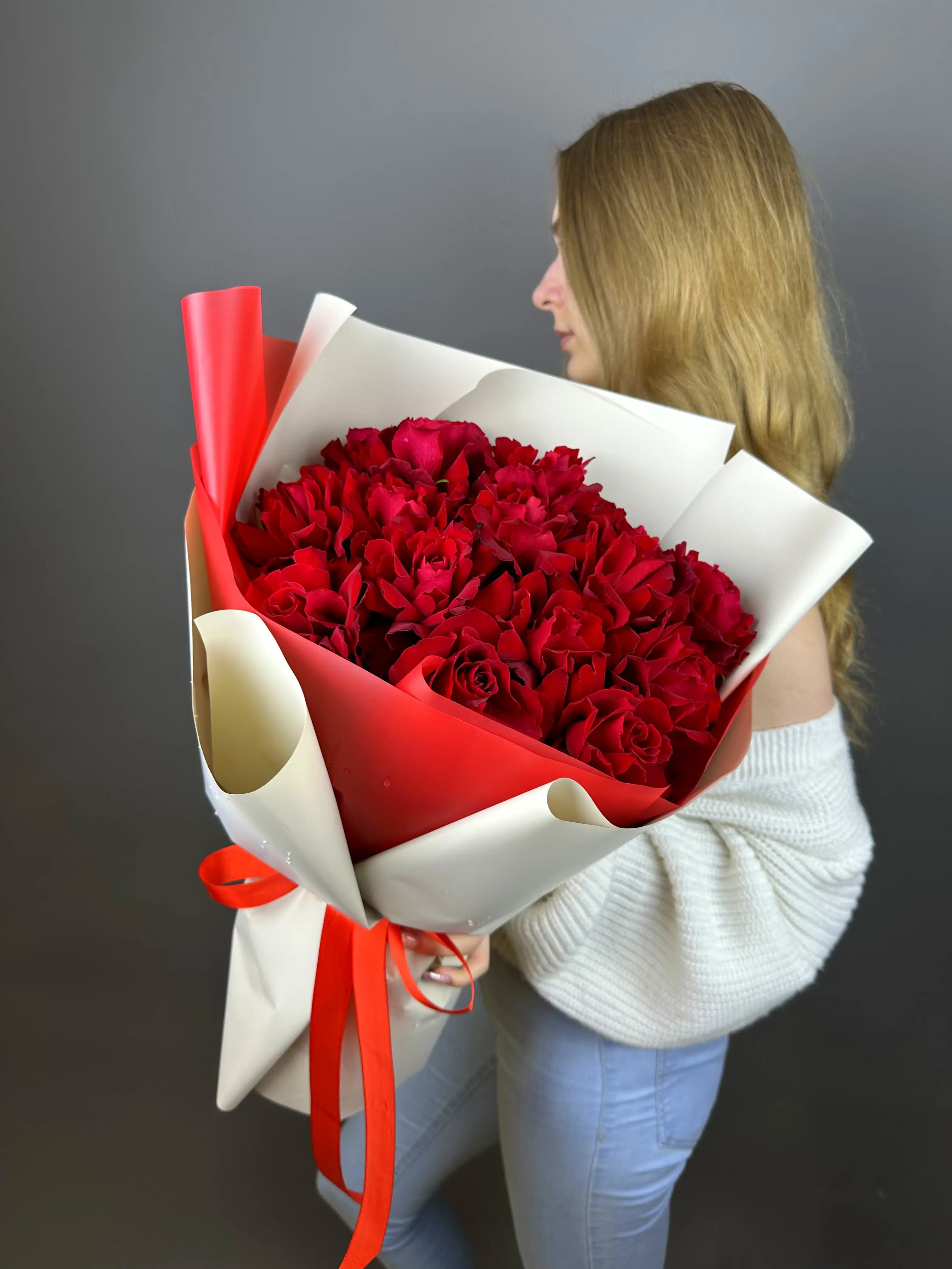Каждая роза в нашем букете выбирается с особым вниманием к качеству и свежести. Красные розы, известные своей непревзойдённой красотой и чарующим ароматом, превратят любое пространство в настоящий райский уголок и станут прекрасным дополнением к празднованию особых событий.