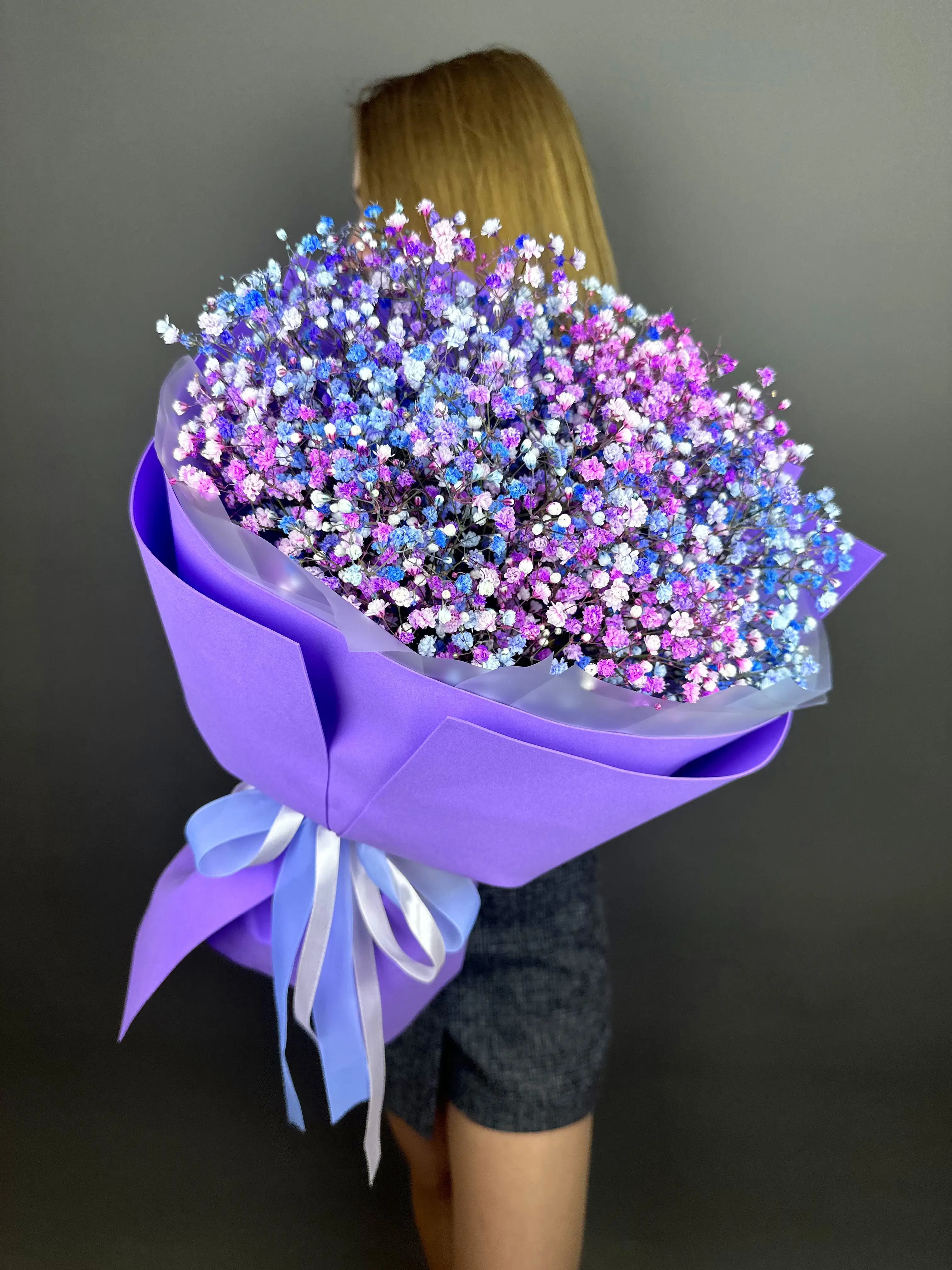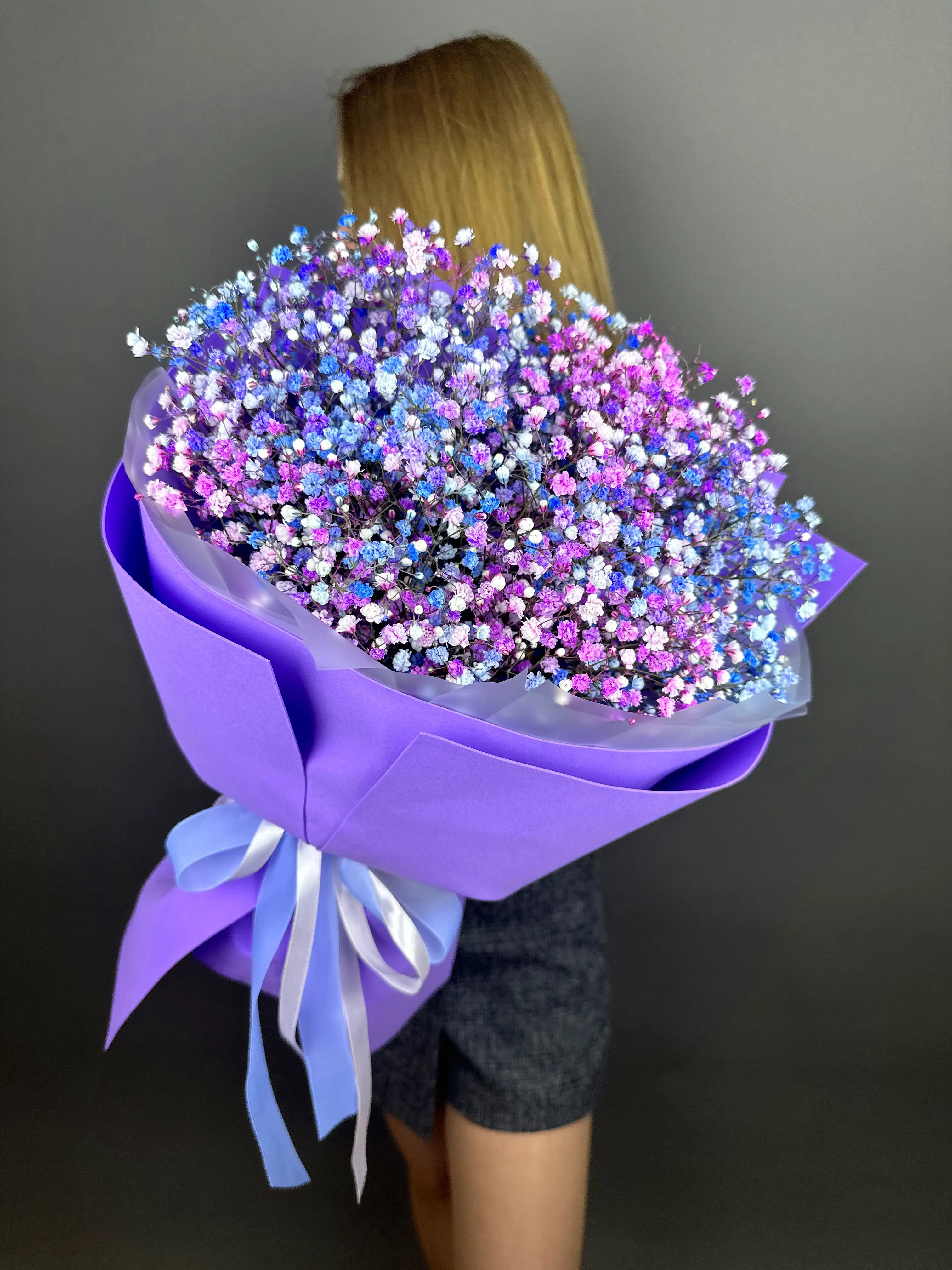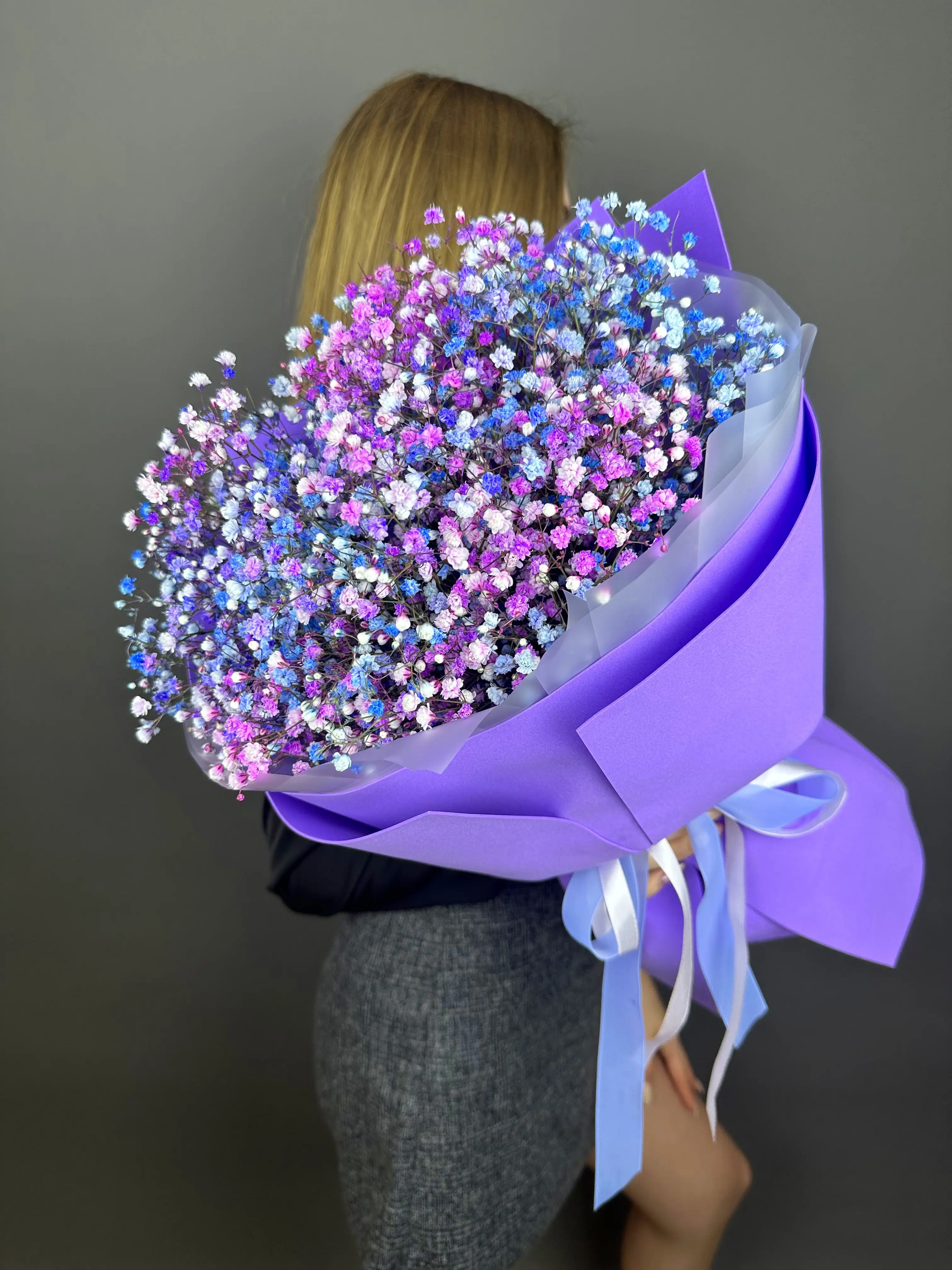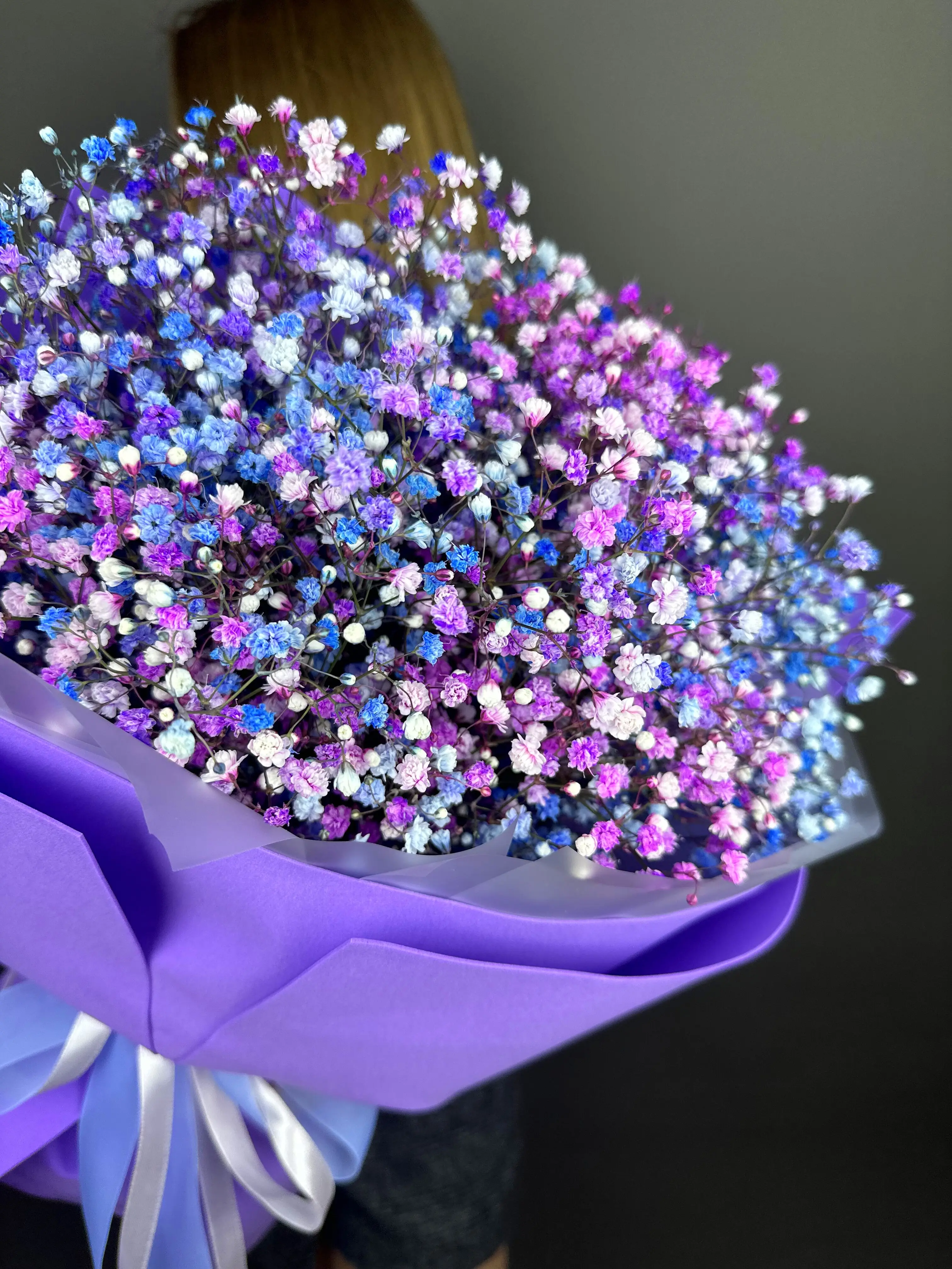 Букет из гипсофилы в сиреневой упаковке — купить по цене от 2590 руб. с доставкой в Дзержинске