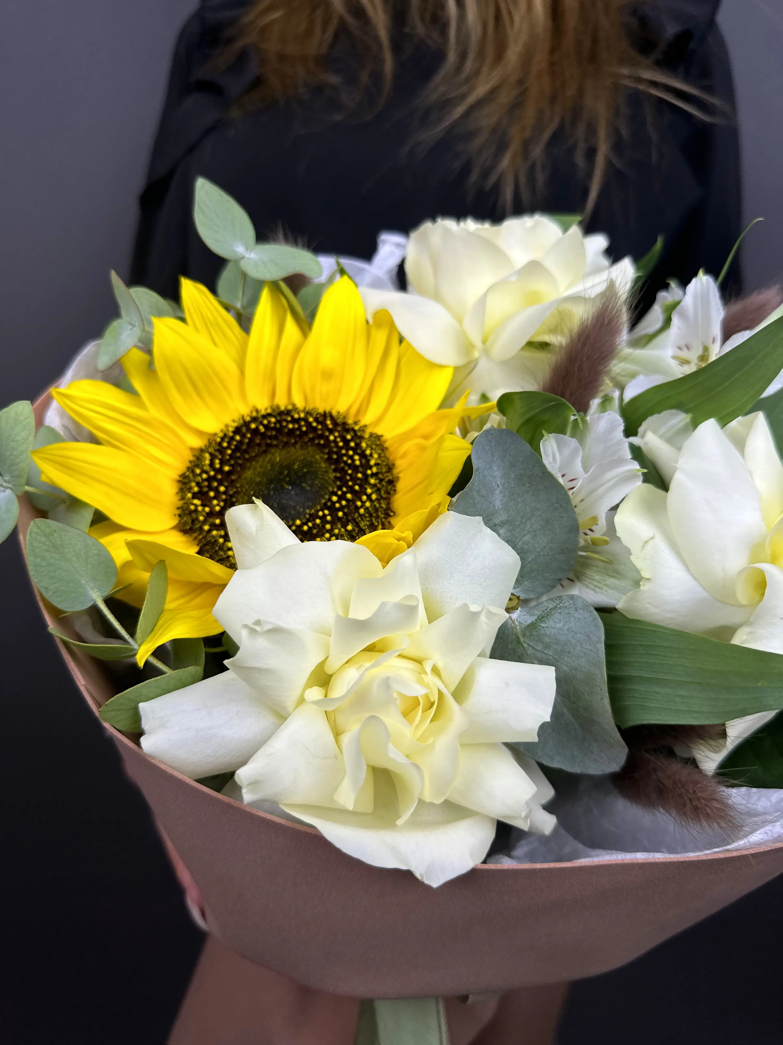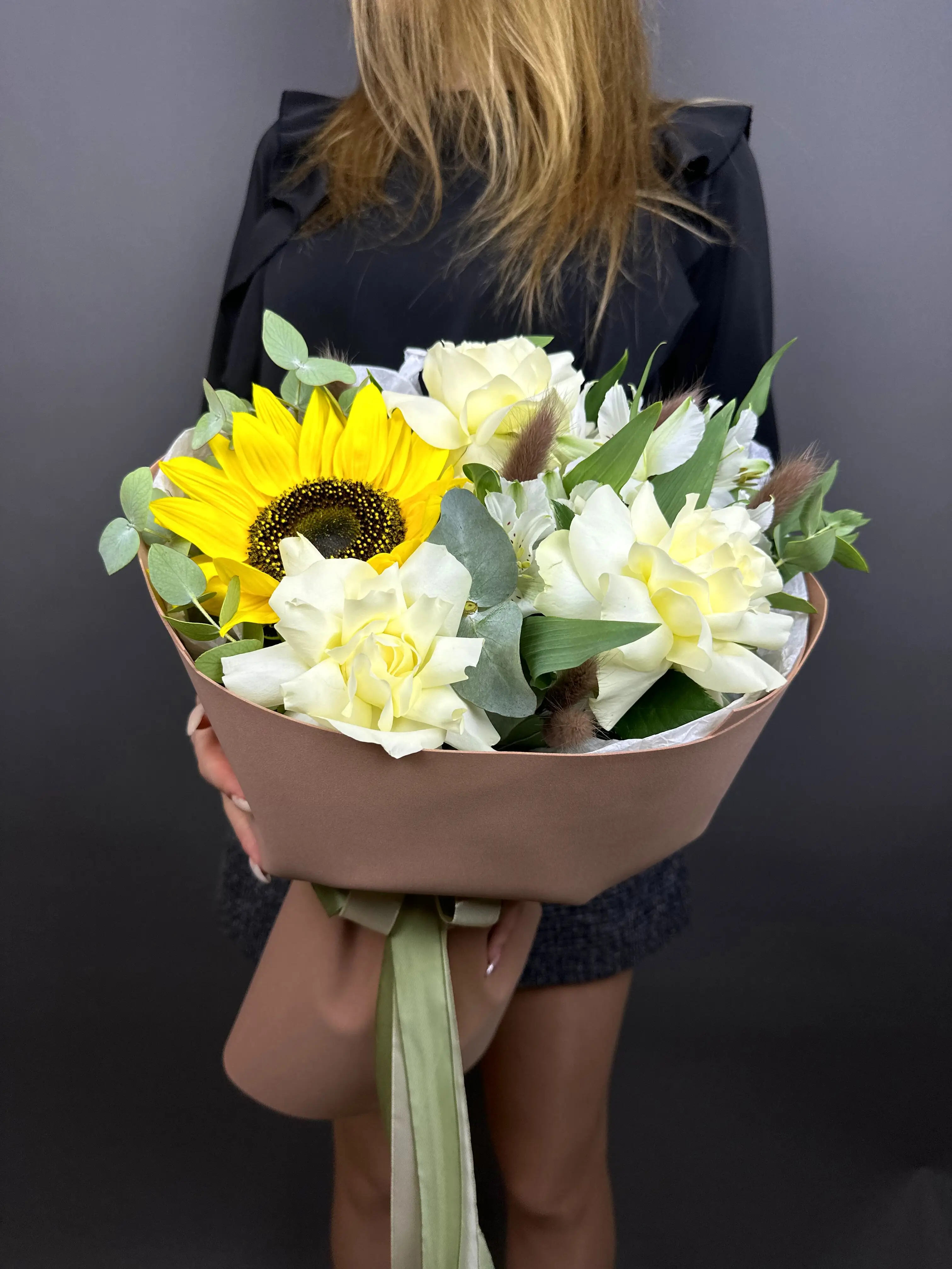 Букет с подсолнухом и альстромерией