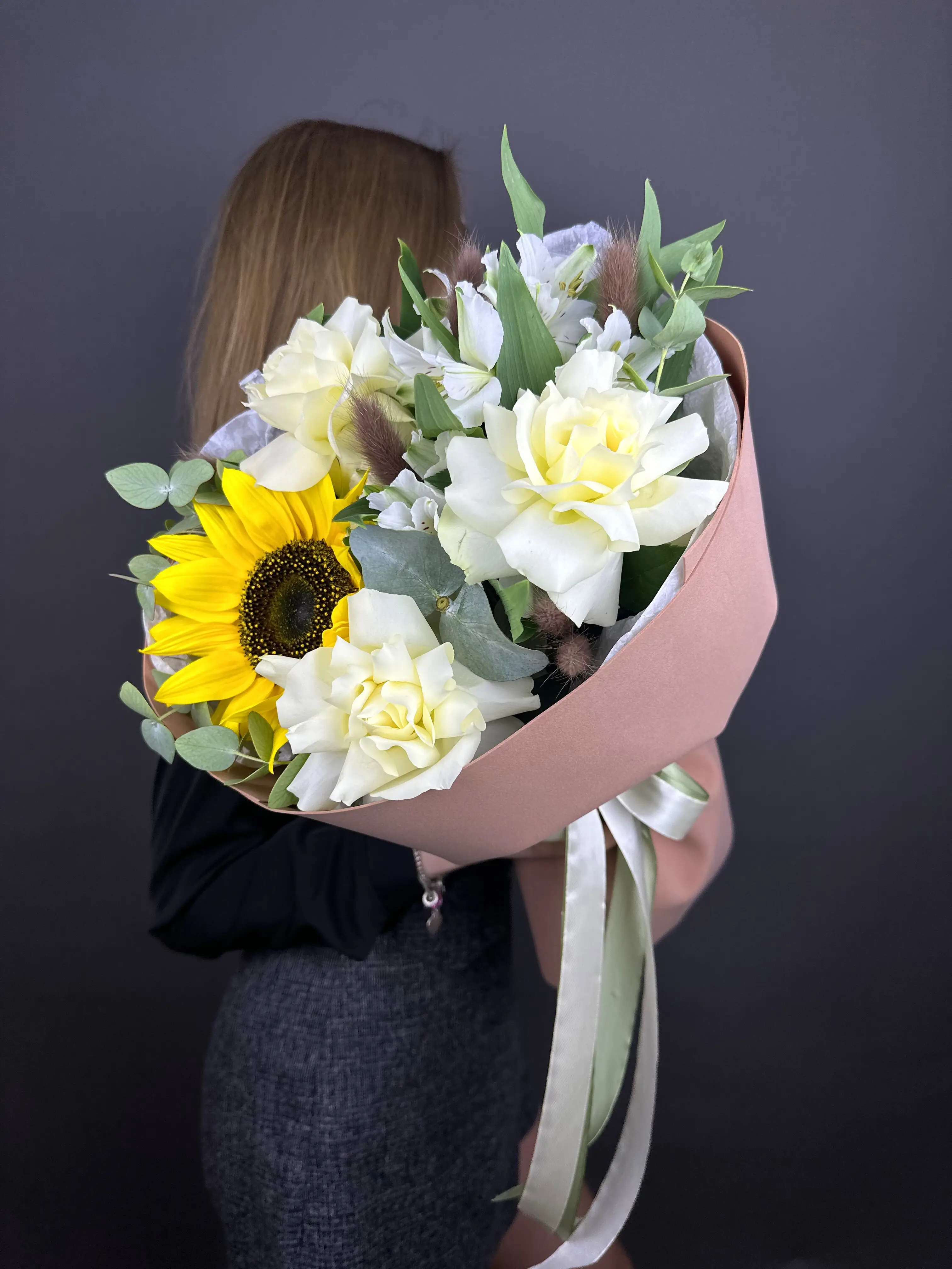 Встречайте яркий и жизнерадостный букет из подсолнухов и альстромерий — идеальное решение для тех, кто хочет подарить частичку солнца и хорошего настроения.