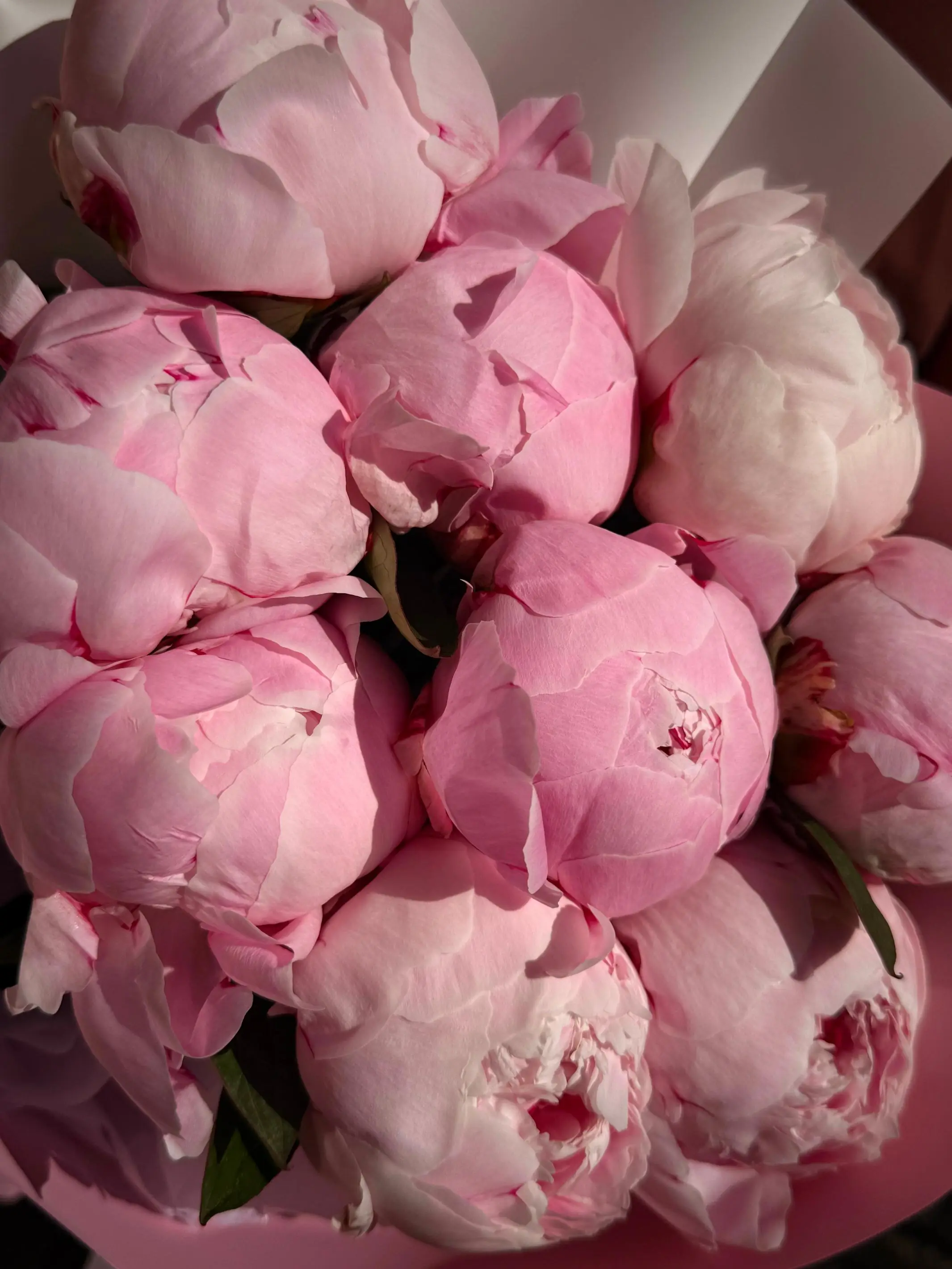Свежий букет из девяти пионов обладает ярким, но при этом нежным и ненавязчивым ароматом, который наполняет пространство особой атмосферой романтики и уюта. Эти цветы долго стоят в вазе, радуя глаза своей первозданной красотой и оставаясь прекрасным украшением интерьера.