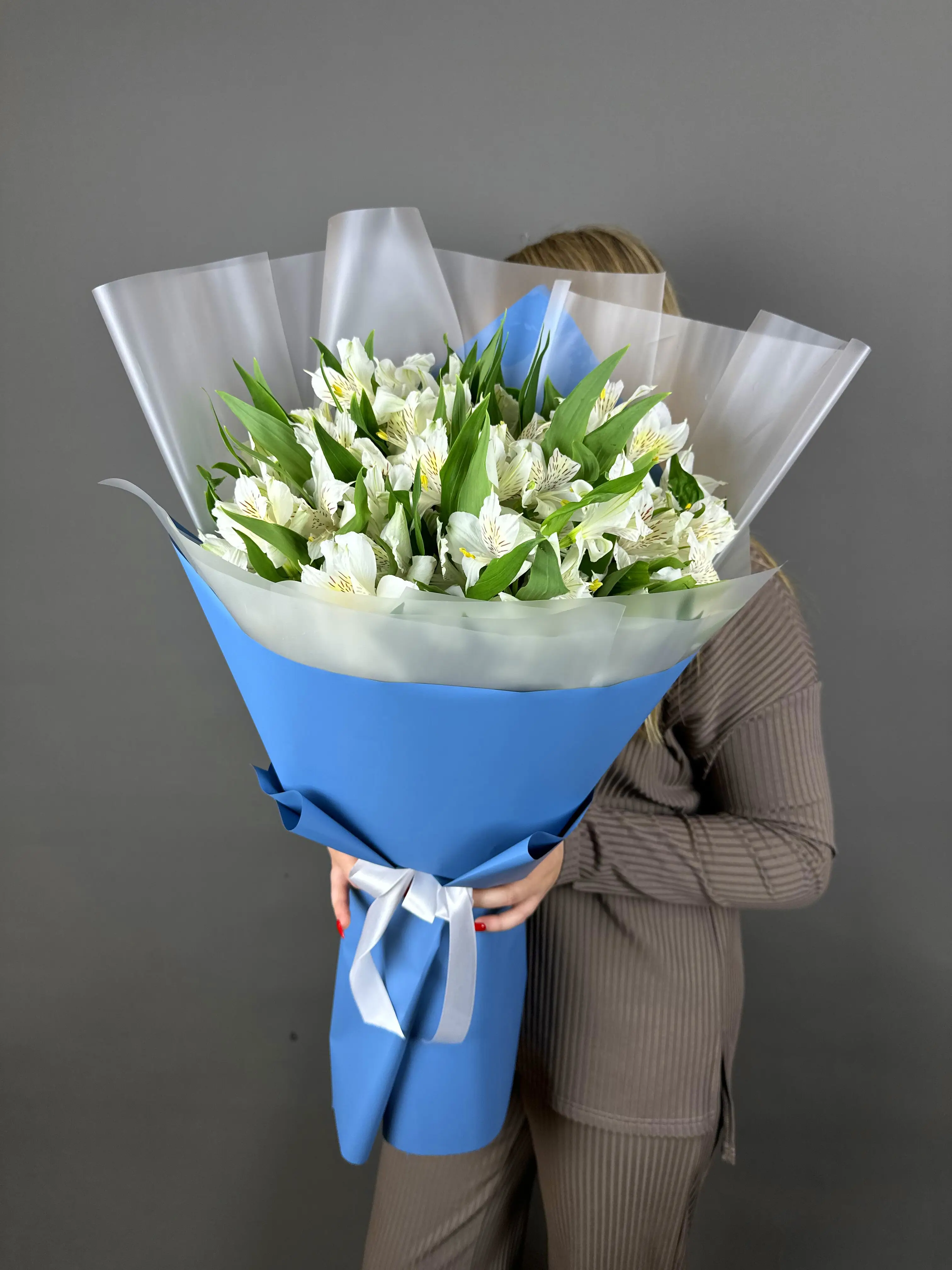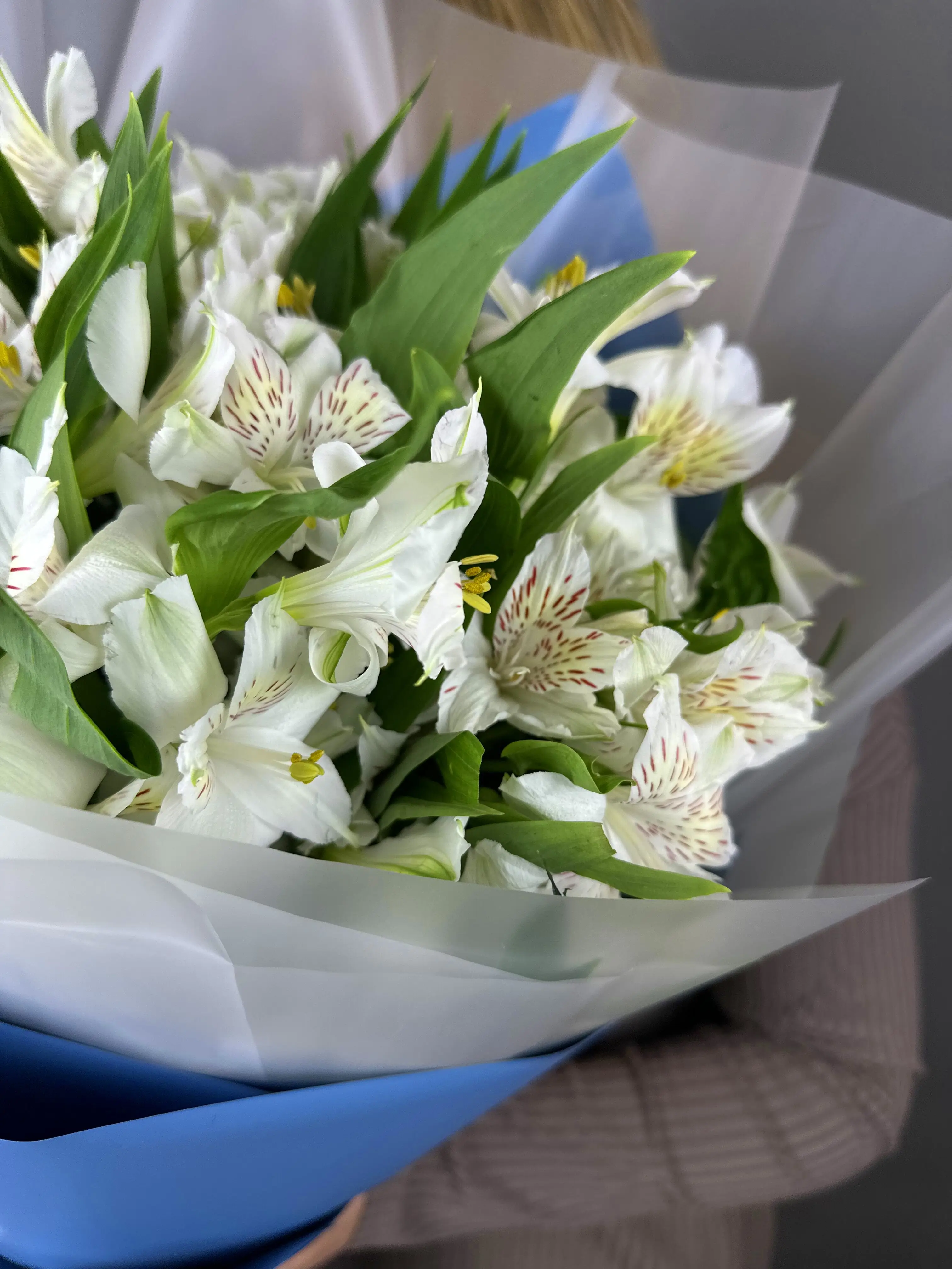 Каждая альстромерия в этом букете тщательно отобрана и аккуратно расположена, что позволяет насладиться их свежестью и красотой. Белые альстромерии источают легкий, но очень приятный аромат, который наполнит помещение атмосферой уюта и спокойствия.
