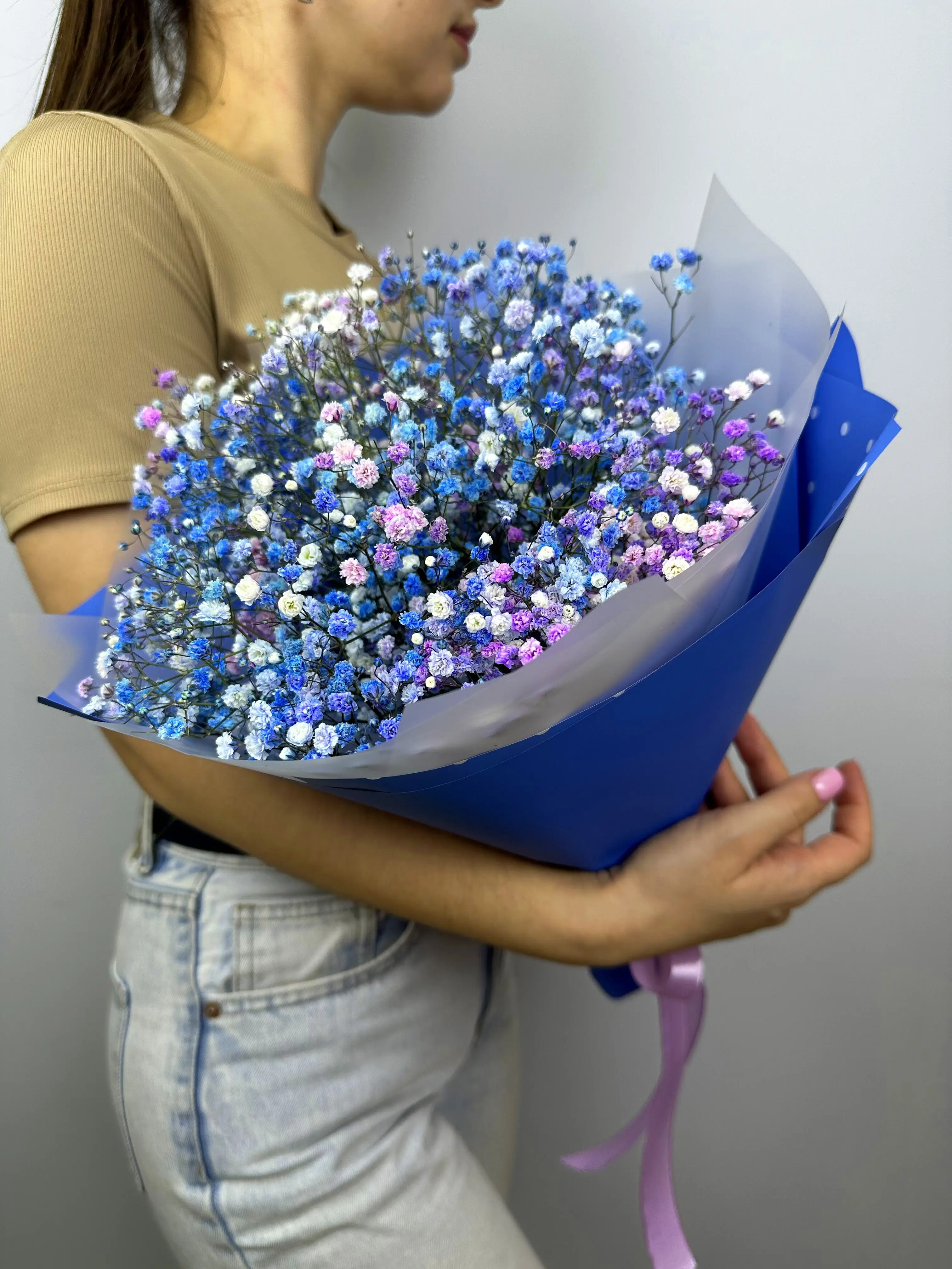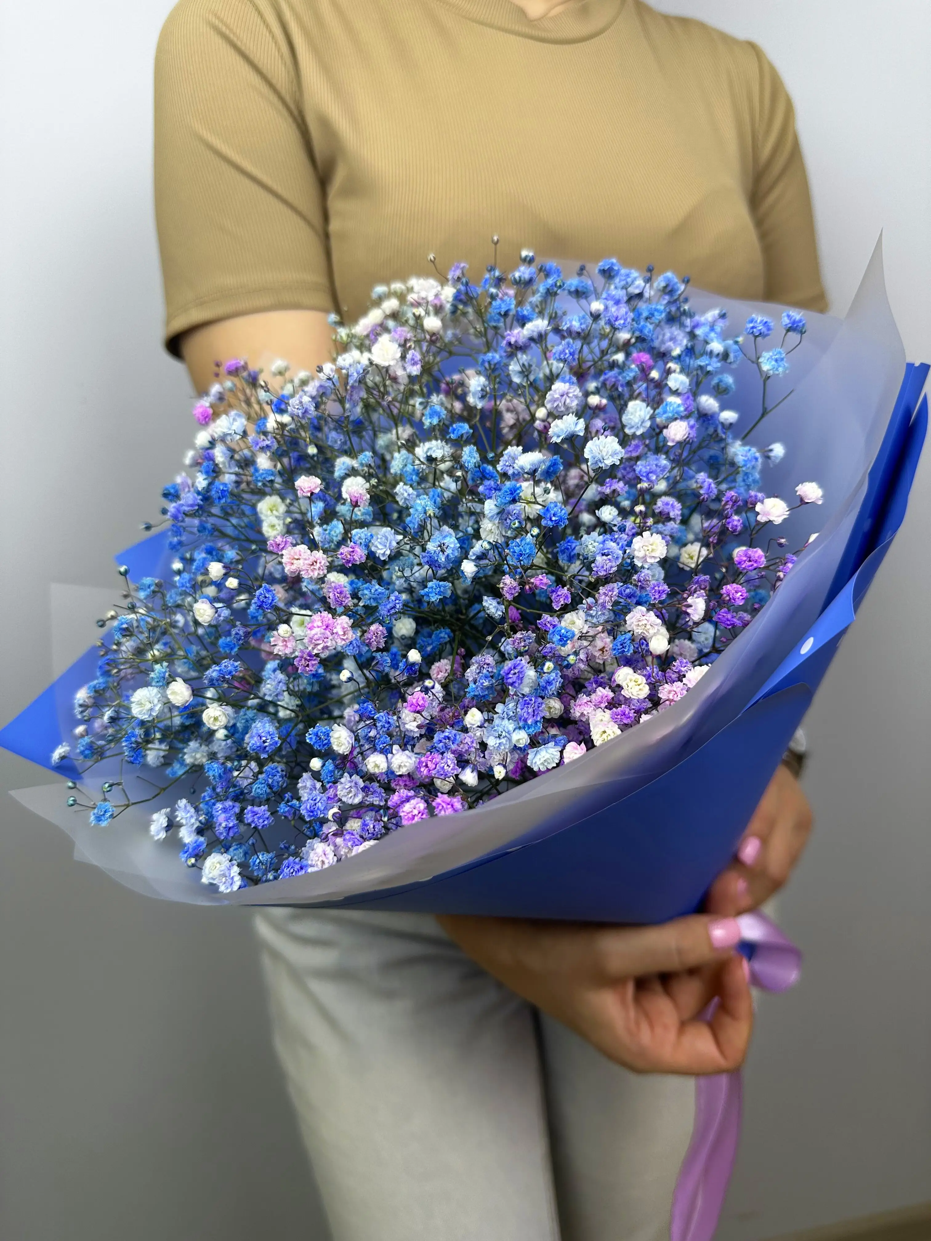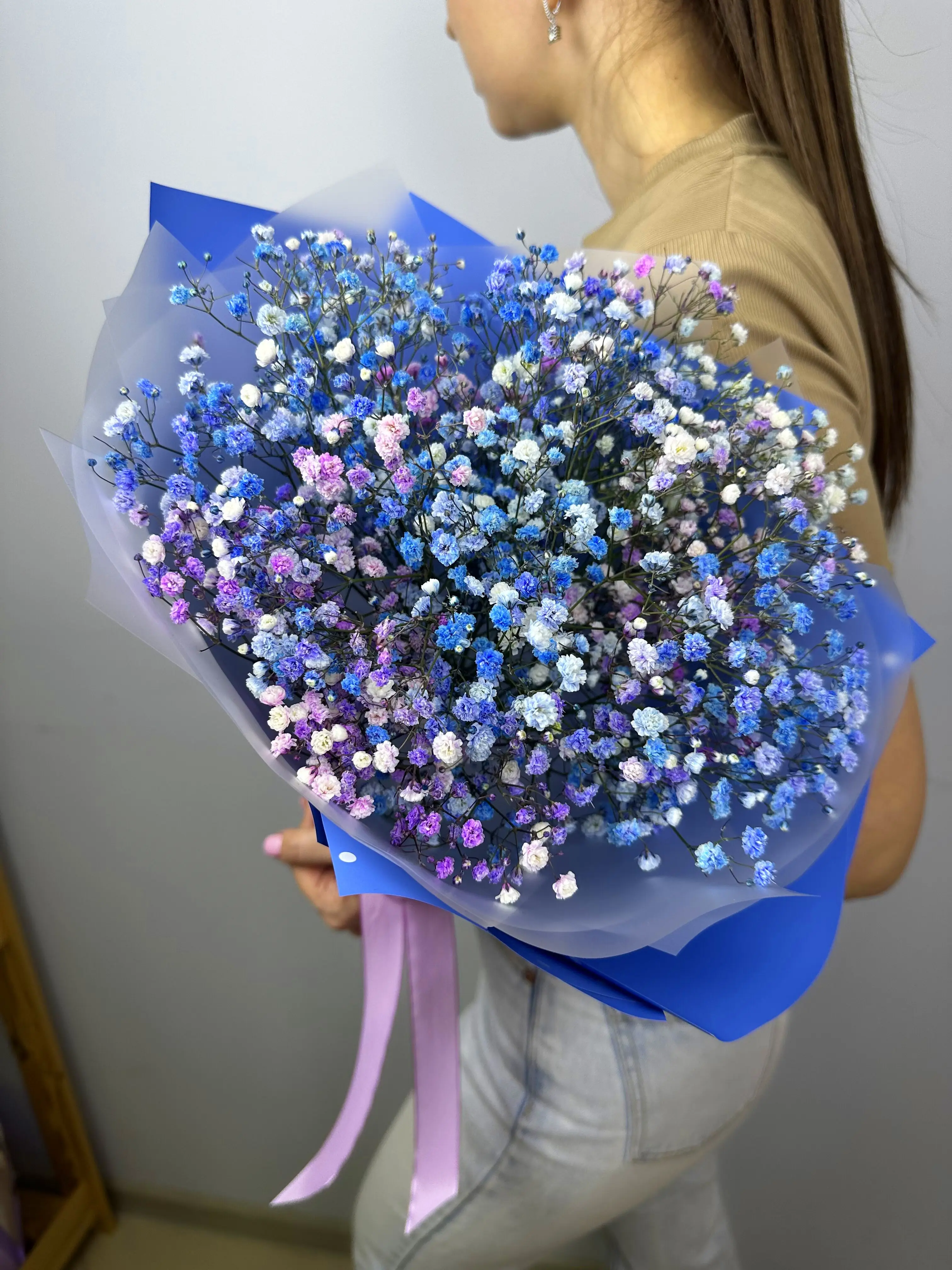 Наша дизайнерская упаковка надёжно защищает цветы, позволяя им долгое время оставаться свежими и красивыми. Качество каждой гипсофилы тщательно контролируется, чтобы вы получили только лучшее.