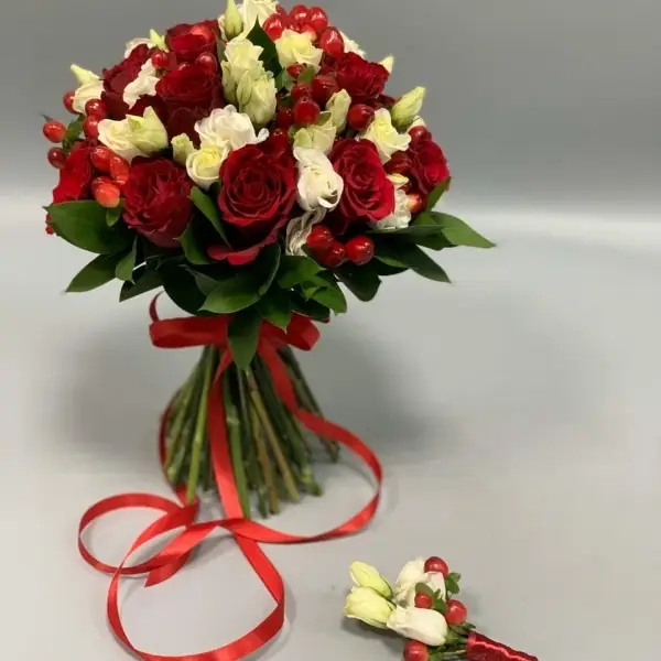 Букет невесты и эустомой и красными розами — купить по цене от 8008 руб. с доставкой в Дзержинске