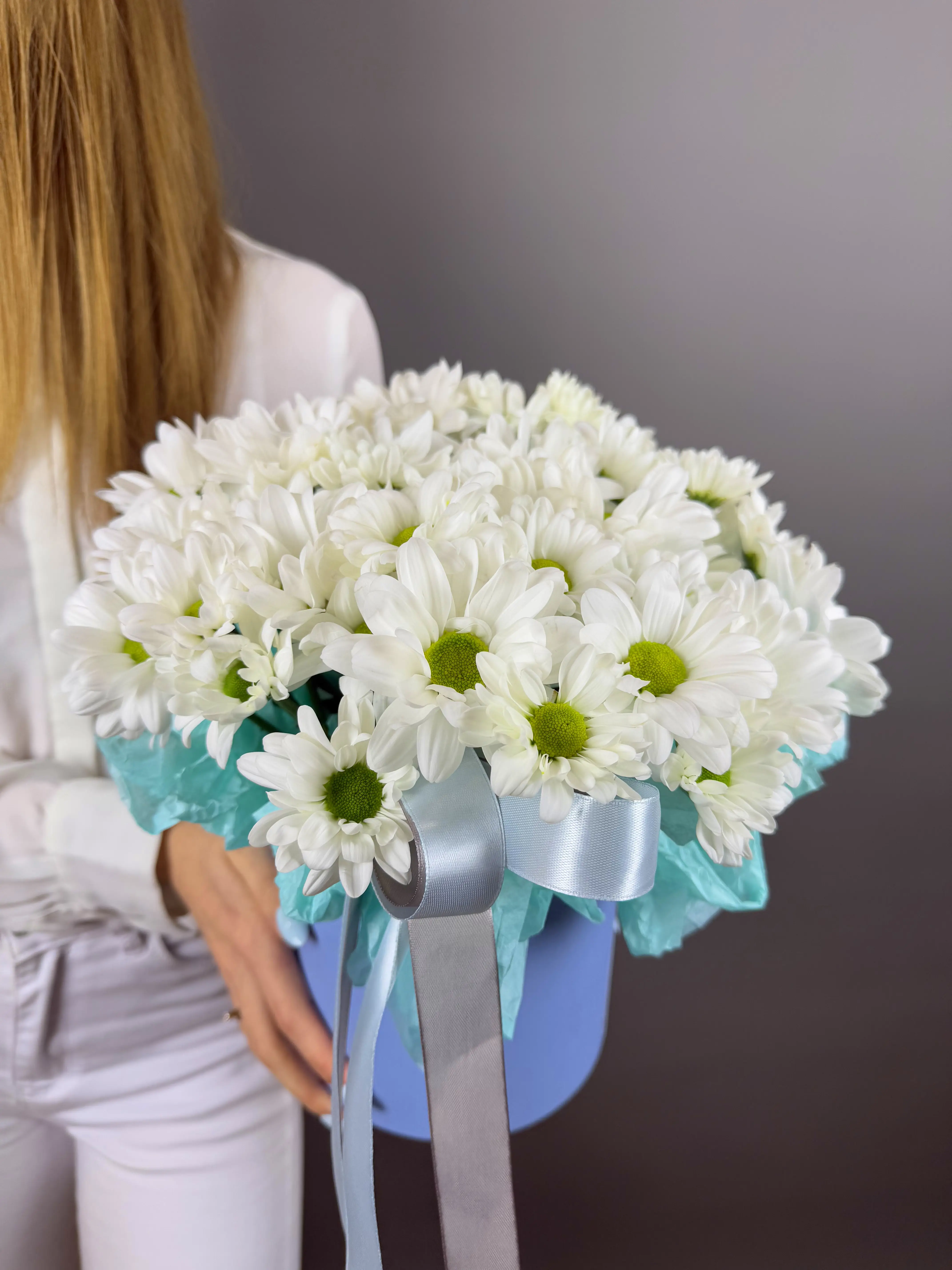 Шляпная коробка с хризантемой Баккарди – это не просто букет, а настоящее воплощение элегантности и свежести в вашем доме! Хризантема Баккарди, с её нежными белыми лепестками и солнечным центром, символизирует радость и верность, создавая атмосферу тепла и гармонии. Яркие и пышные цветы в стильной шляпной коробке станут изысканным акцентом любого интерьера, добавляя нотки осенней роскоши и уюта.