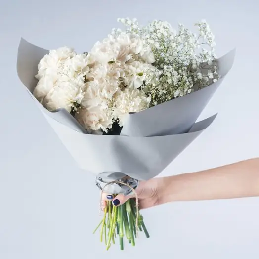 У нас можно заказать 15 Белых Гвоздик и Гипсофила за 3850 руб.