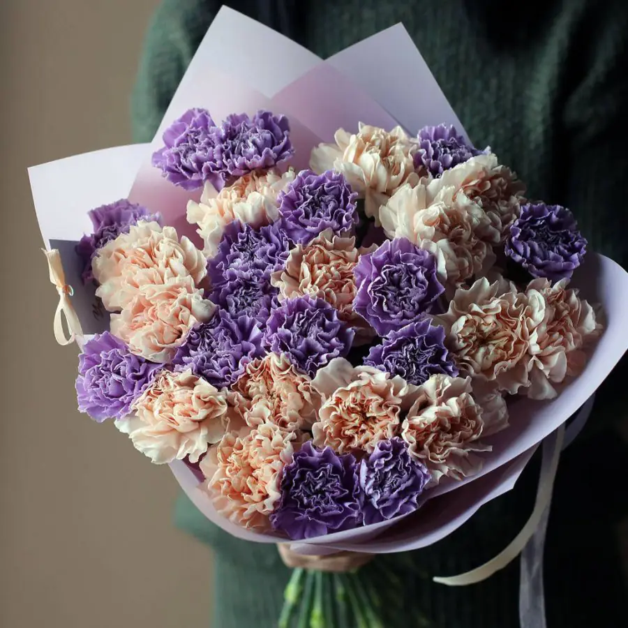 У нас можно заказать 29 Кремово-Сиреневых Гвоздик в упаковке за 4120 руб.