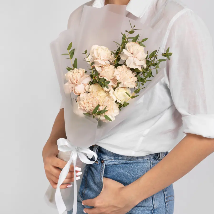 На фото - 9 Коричневых Гвоздик в упаковке . В составе данной композиции: Диантус - 9 шт,