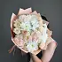 На фото - Хризантема кустовая, роза кустовая и гвоздика. В составе данной композиции: Роза кустовая - 5 шт ,
