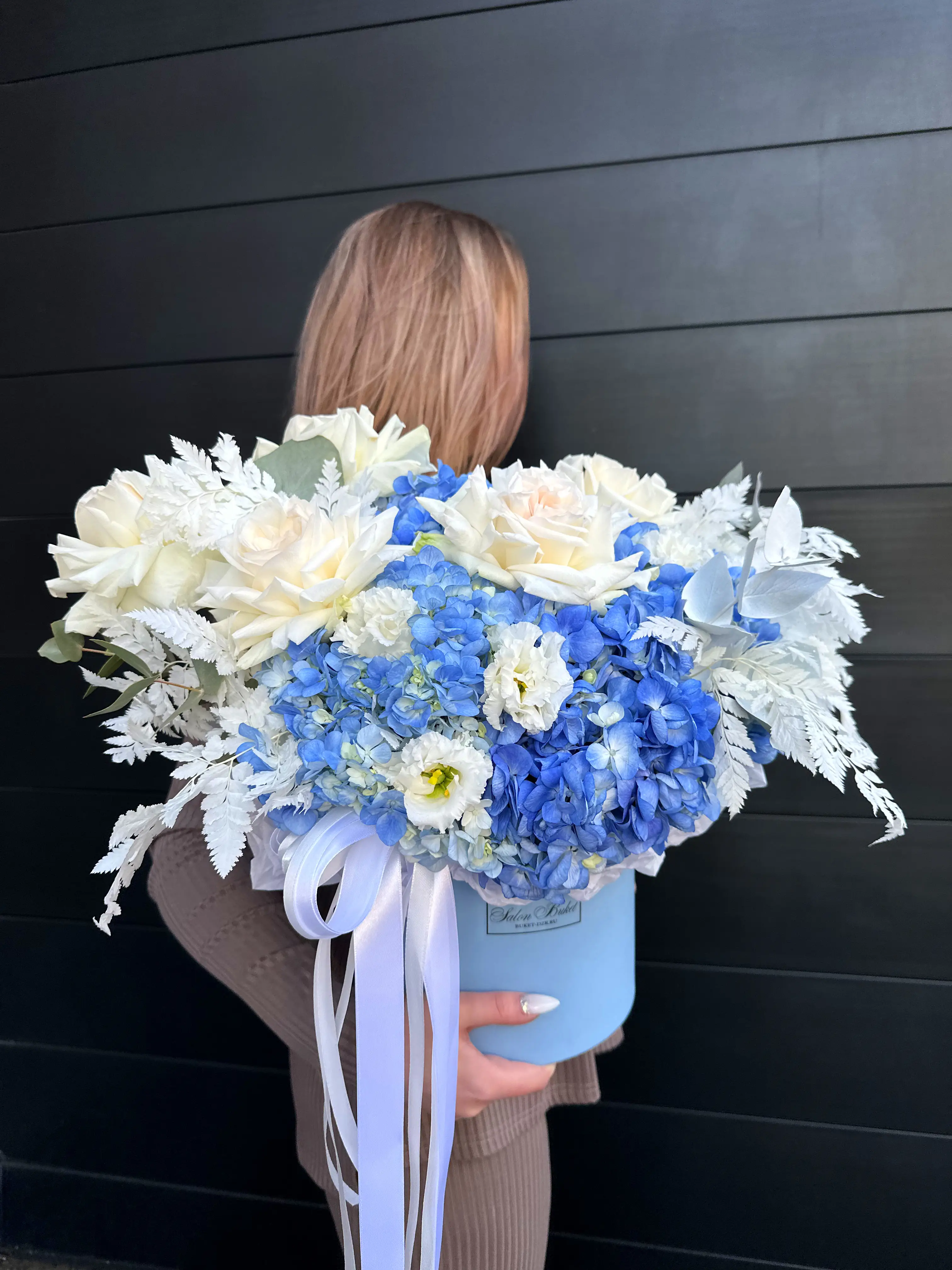 Композиция с голубой гортензией и розами — купить по цене от 7275 руб. с доставкой в Дзержинске